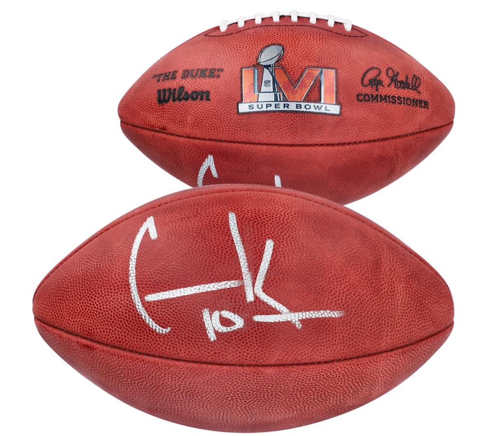 Wilson Official NFL "The Duke" Super Bowl LVI Logo Game Ball football. Hand-signed by Cooper Kupp (Los Angeles Rams).