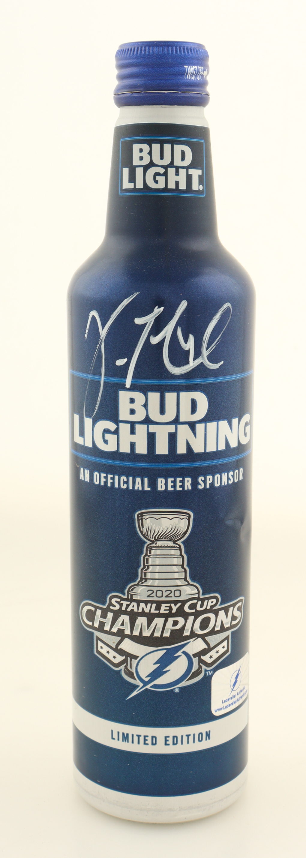 Tampa Bay Lightning 2020 Stanley Cup Champions Logo Bud Light Beer Bottle. Hand-signed by Vinny Lecavalier.