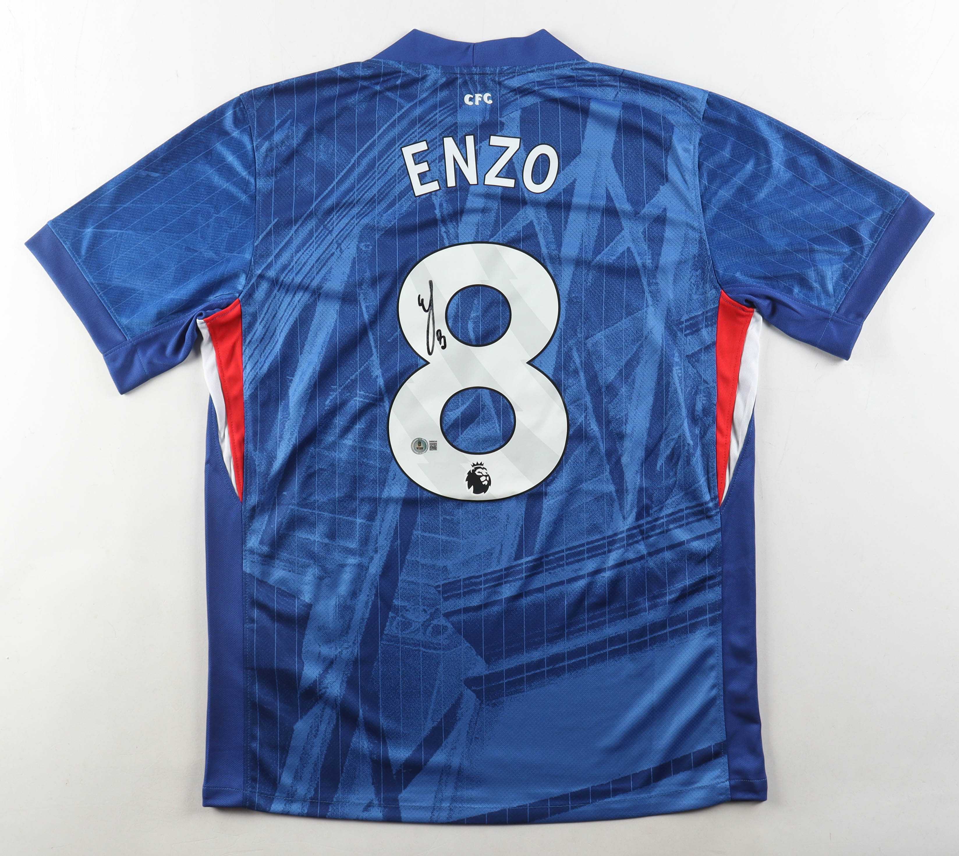 Nike jersey with everything pressed on, size M. Hand-signed by Enzo Fernandez (Chelsea F.C.).