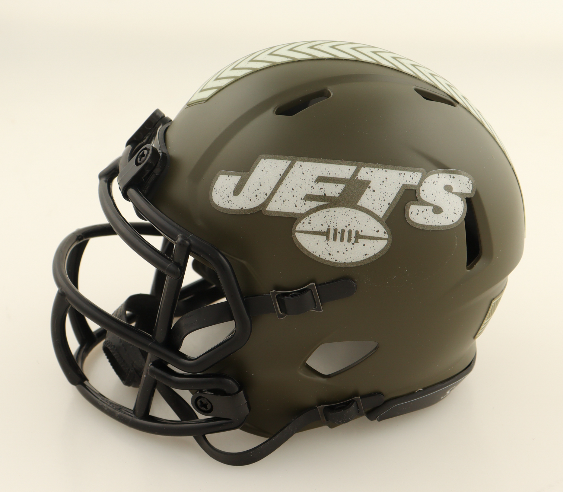 Riddell New York Jets Salute To Service Alternate Speed mini helmet. Hand-signed By Justin Fields.