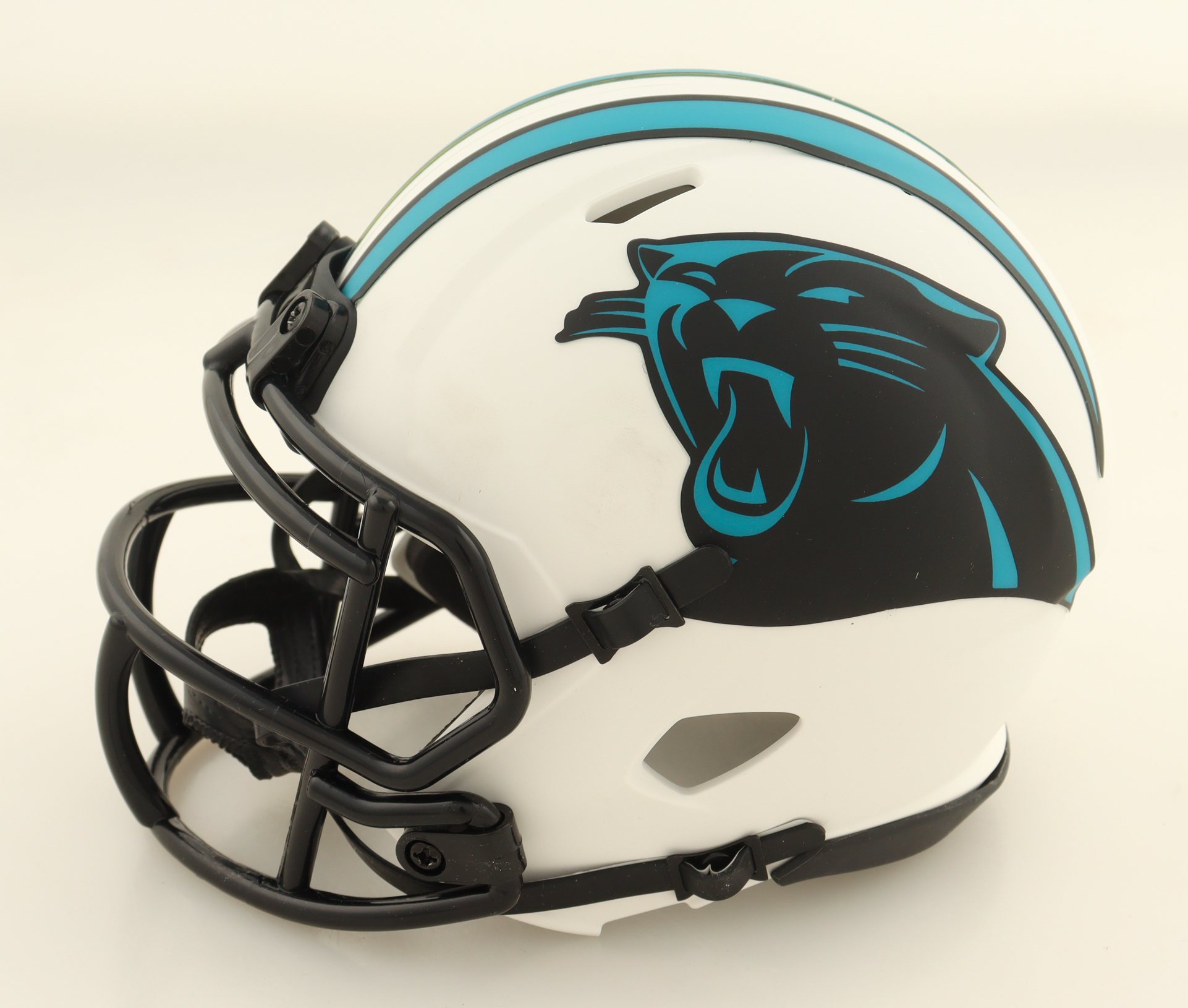 Riddell Carolina Panthers lunar eclipse alternate speed mini helmet. Hand-signed by Sam Darnold.