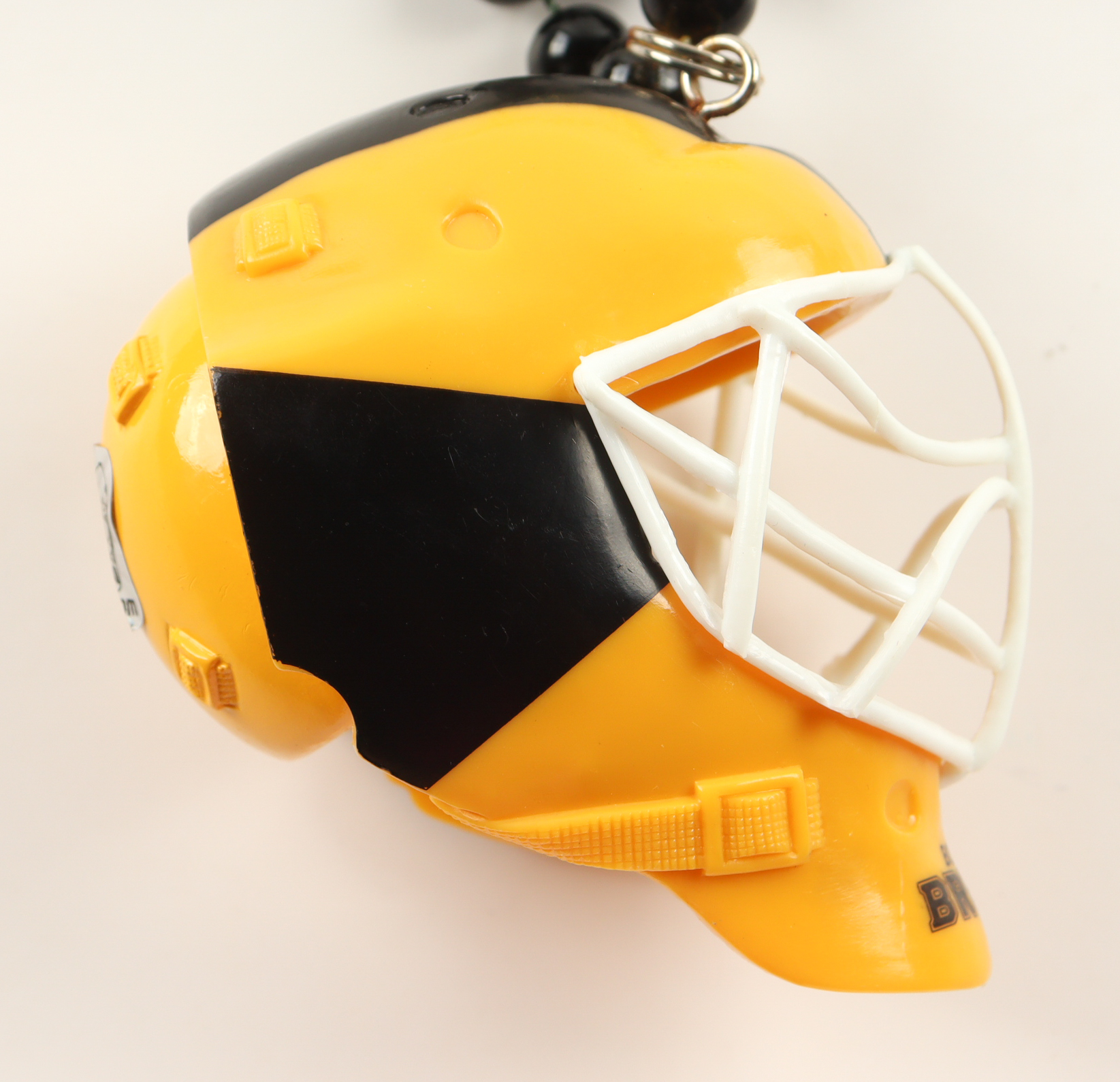 Boston Bruins mini goalie helmet bead chain. Hand-signed by Tuukka Rask.