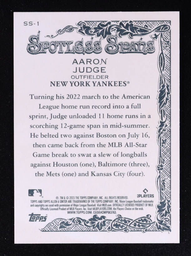 Aaron Judge 2023 Topps Allen and Ginter Spotless Spans #SS1