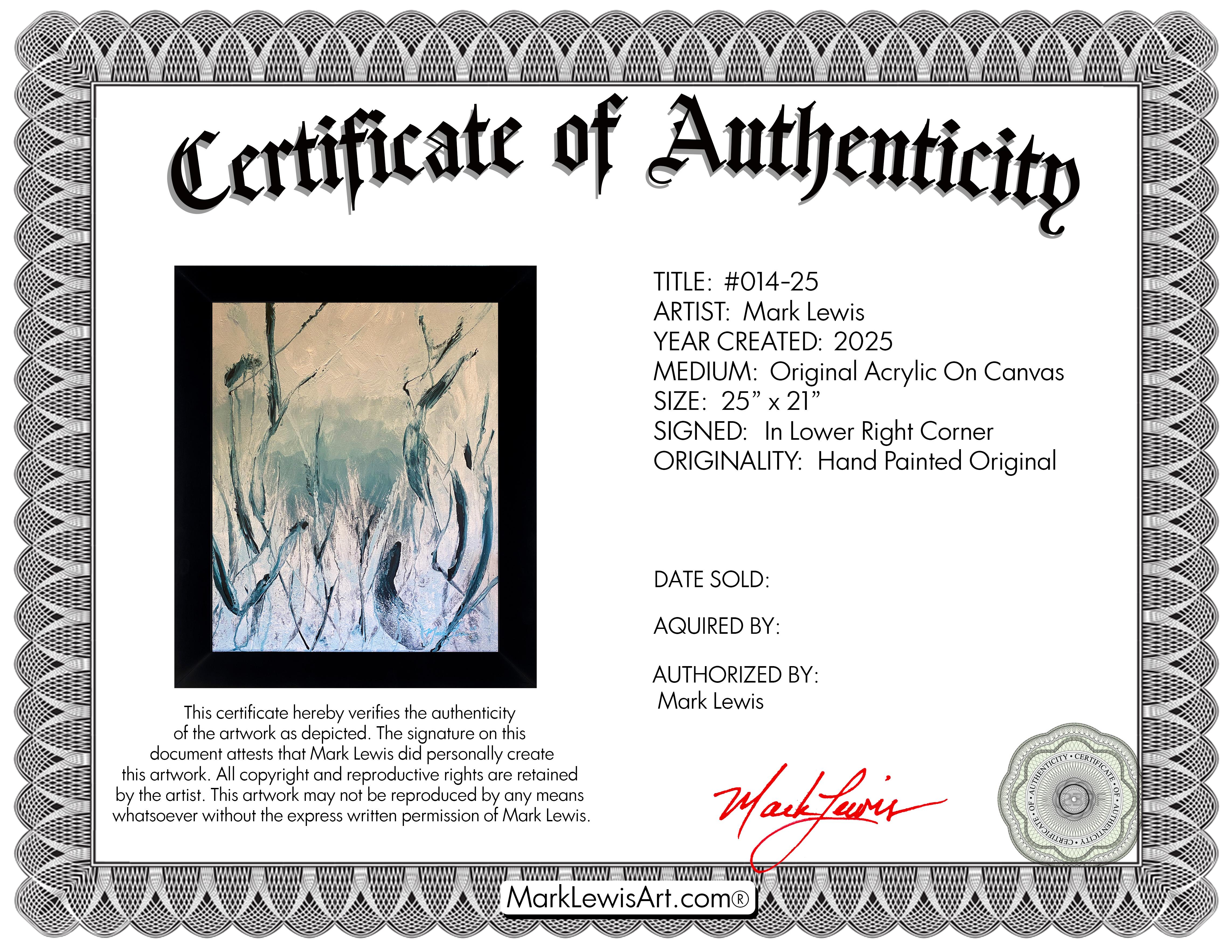 Hand-signed and elegantly framed, #014-25 represents an outstanding opportunity to acquire an original Mark Lewis a powerful conversation piece and a striking addition to any fine art collection.