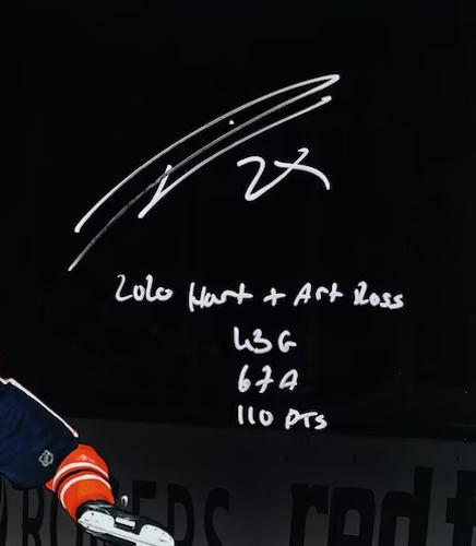 Photo measures 16" x 20" in size and has been hand-signed and inscribed in by Leon Draisaitl (Edmonton Oilers).