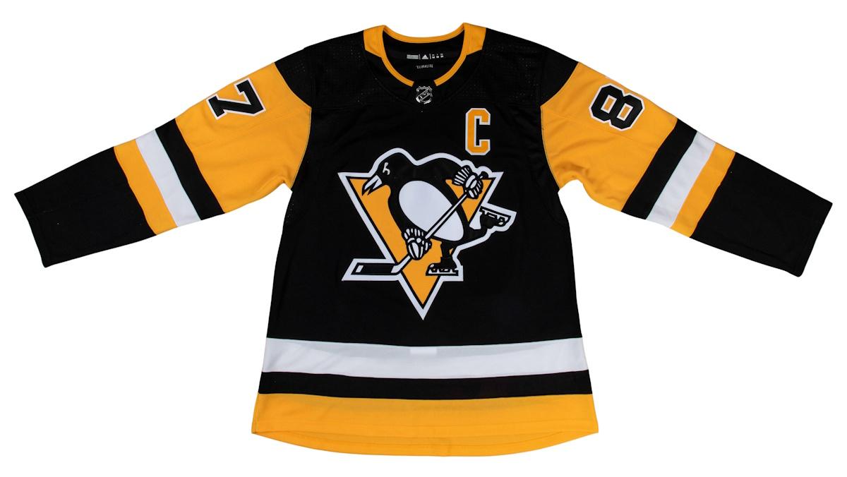 Adidas jersey with everything sewn on, size 52. Has been hand-signed by Sidney Crosby (Pittsburgh Penguins).