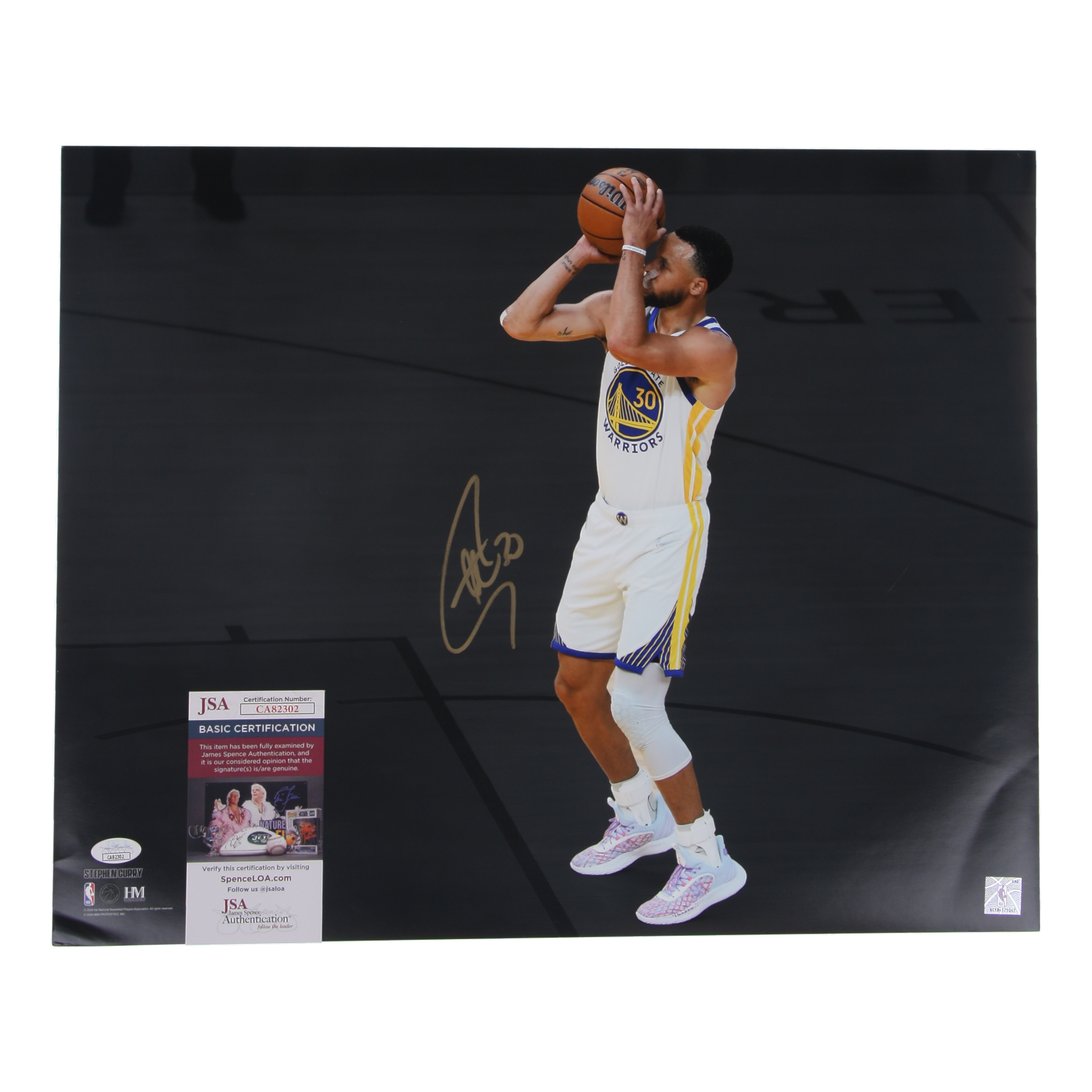 Photo measures 16" x 20" in size and has been hand-signed by Stephen Curry (Golden State Warriors).