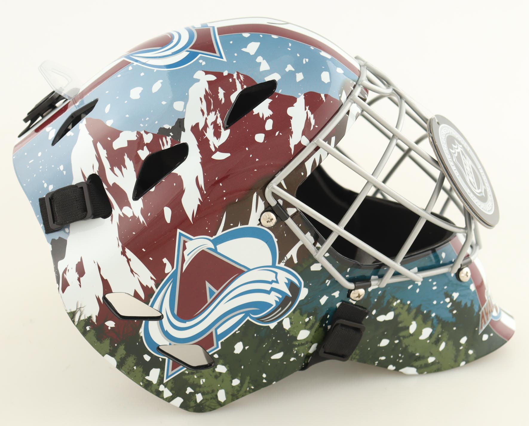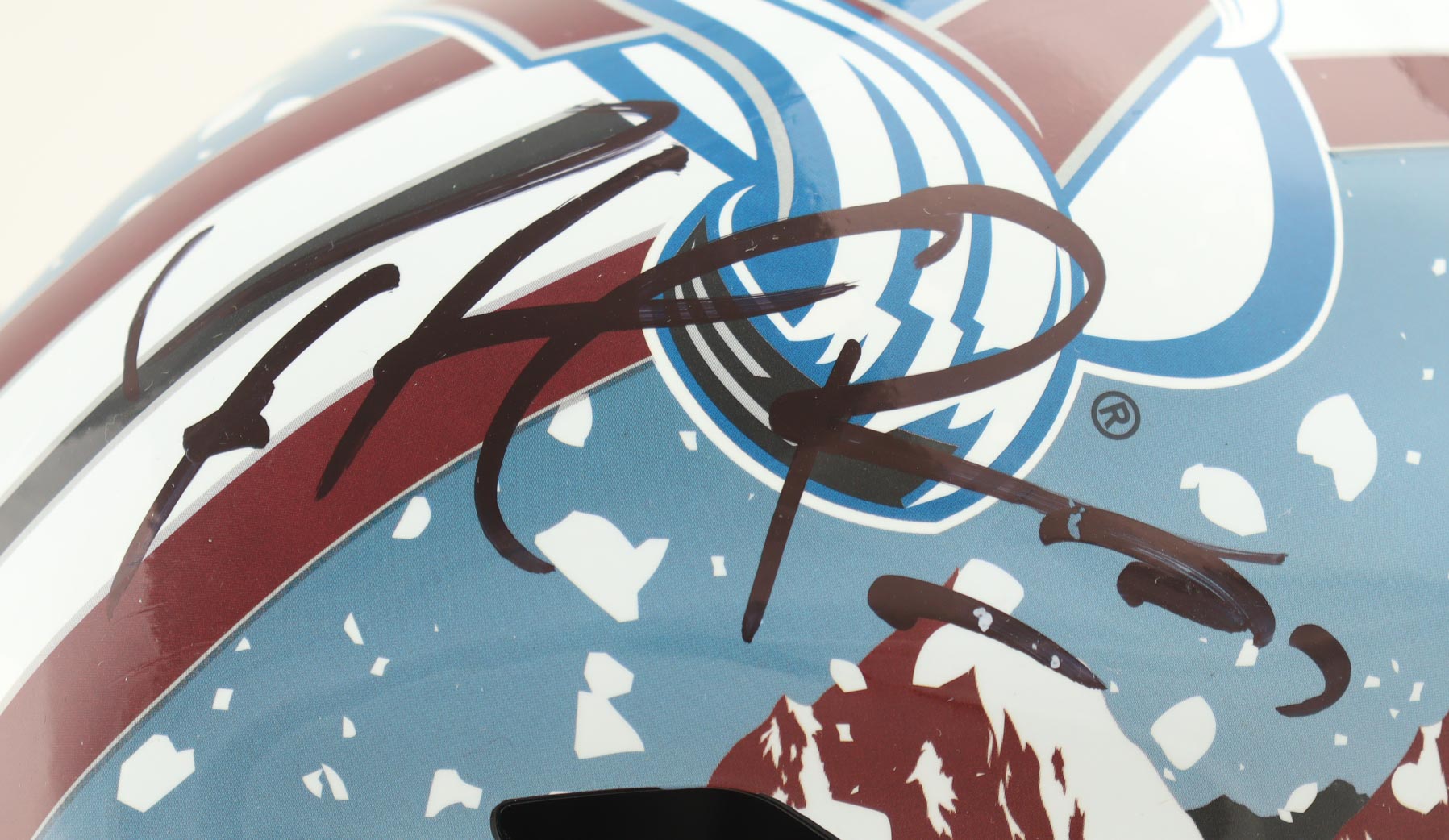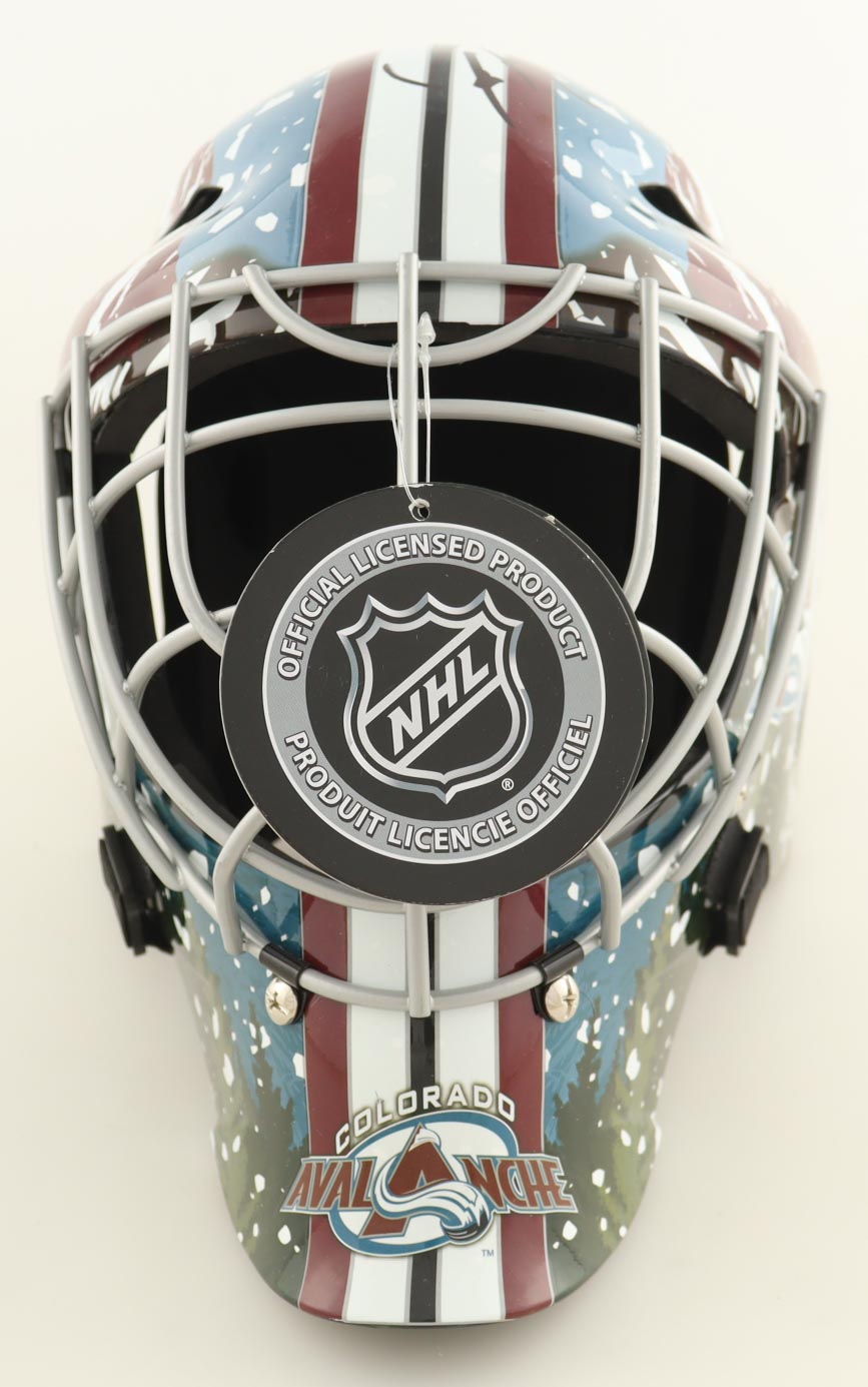 Franklin Colorado Avalanche full-size goalie mask. Hand-signed by Patrick Roy (HOF).