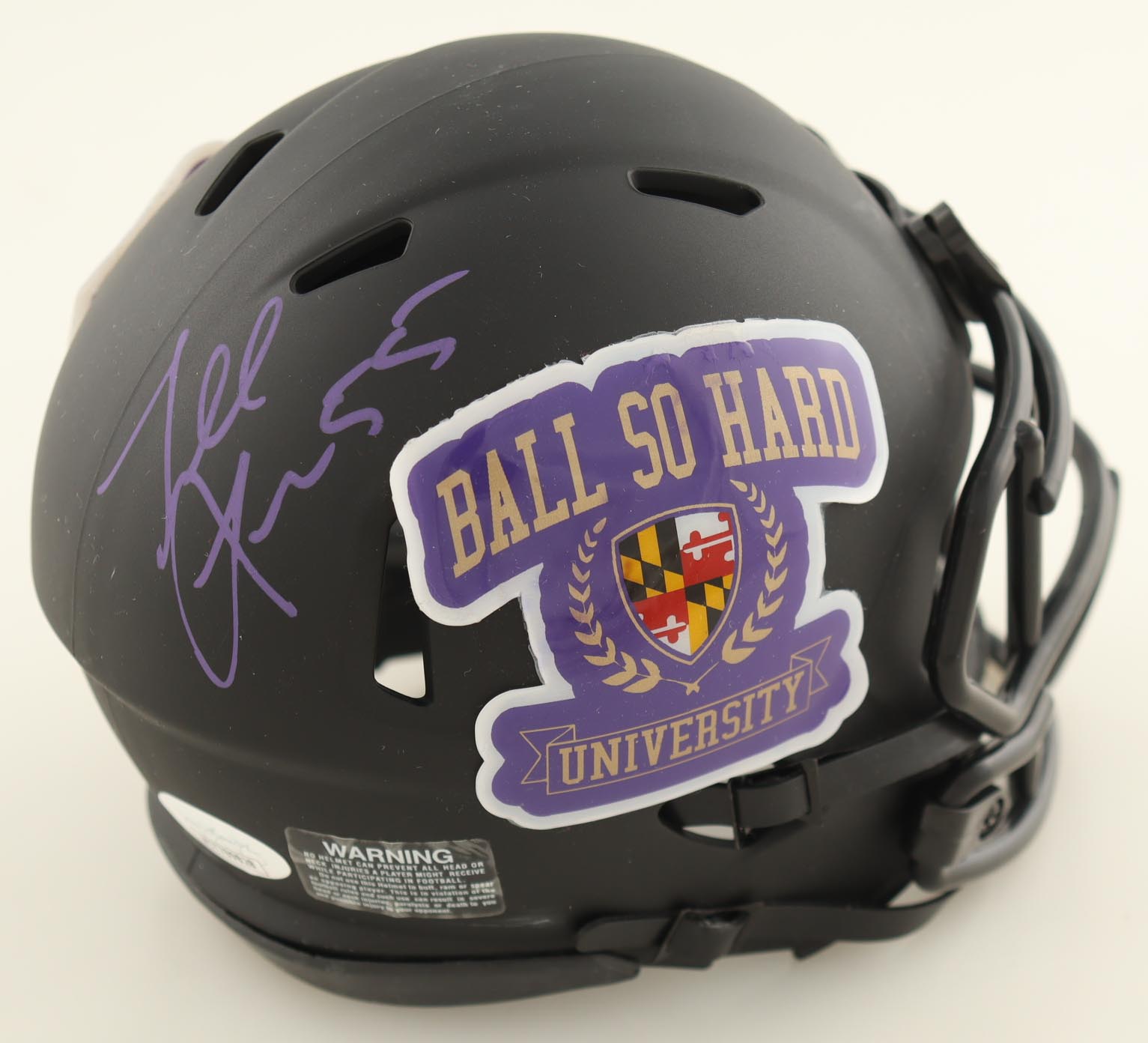 Riddell Baltimore Ravens Alternate Speed Mini Helmet. Hand-signed by Terrell Suggs.