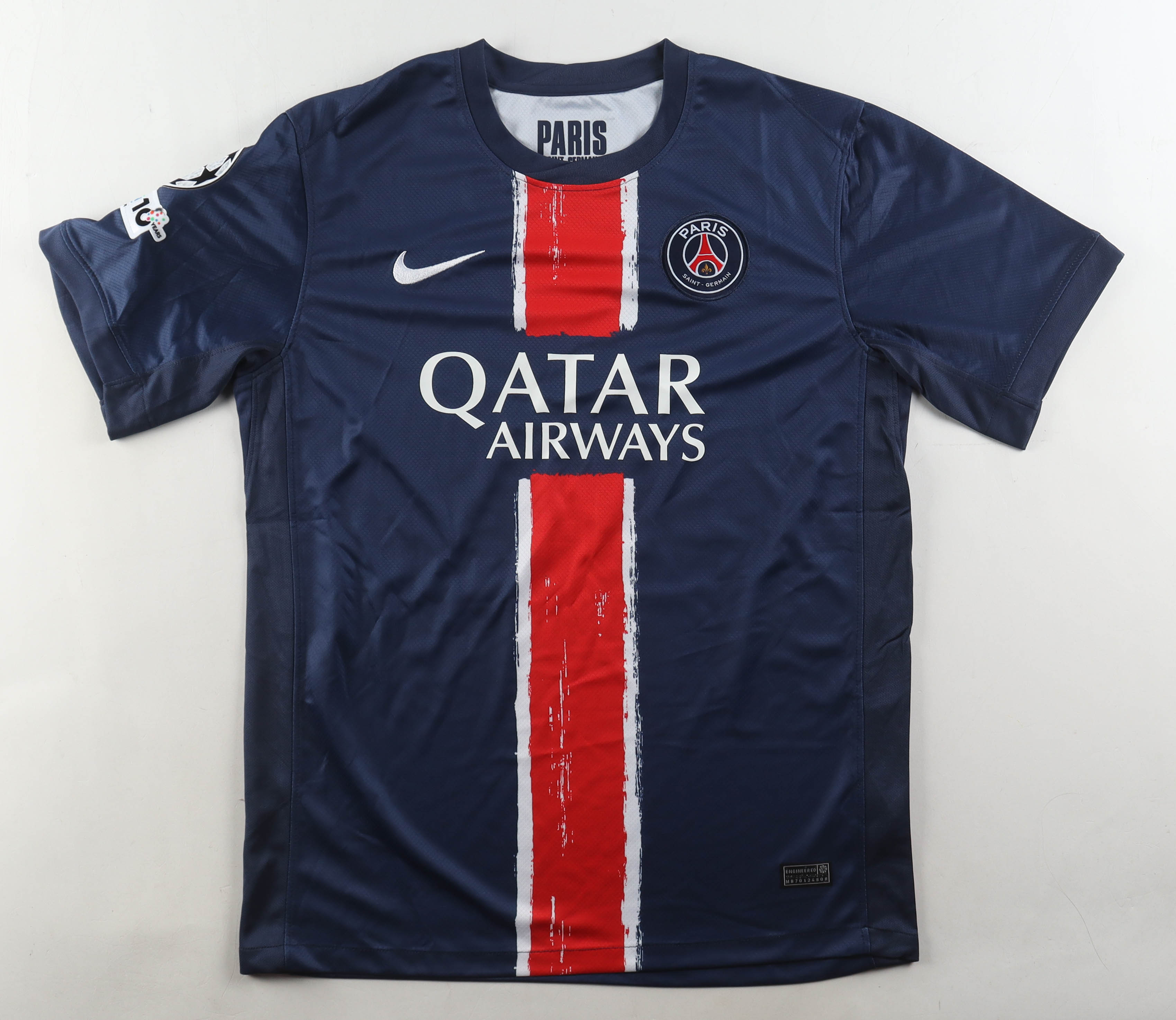 Nike jersey. Everything is sewn and pressed on, size L. Hand-signed by Warren Zaïre-Emery (Paris Saint-Germain FC).