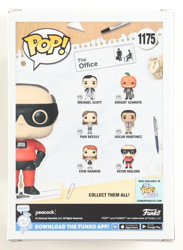 Vinyl figure measures approximately 4" tall and has been hand-signed and inscribed on the packaging by Brian Baumgartner (Kevin Malone). Please note, there is some corner wear on the packaging.