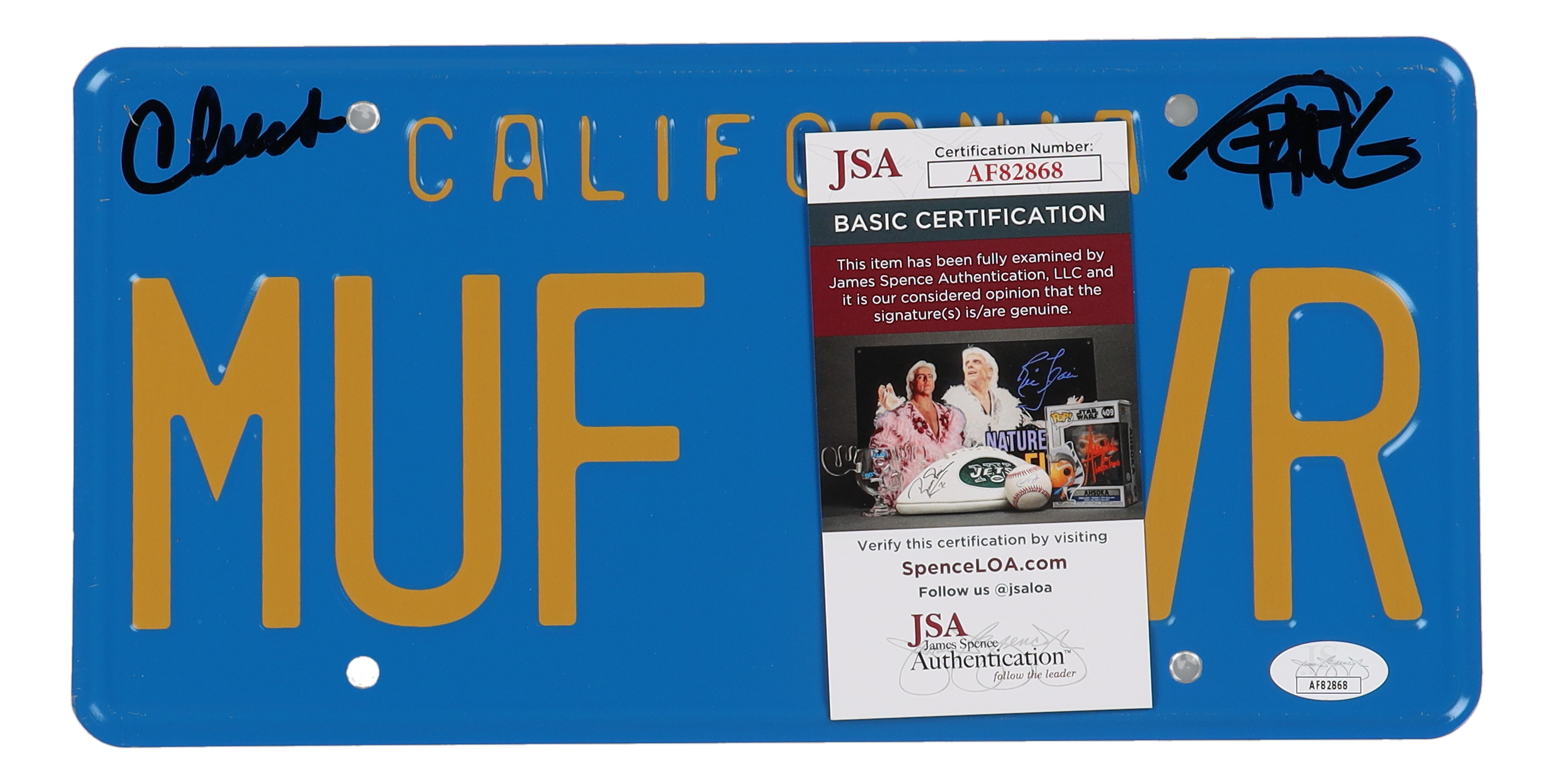 License plate measures approximately 6" x 12" in size and has been hand-signed by Cheech Marin and Tommy Chong.