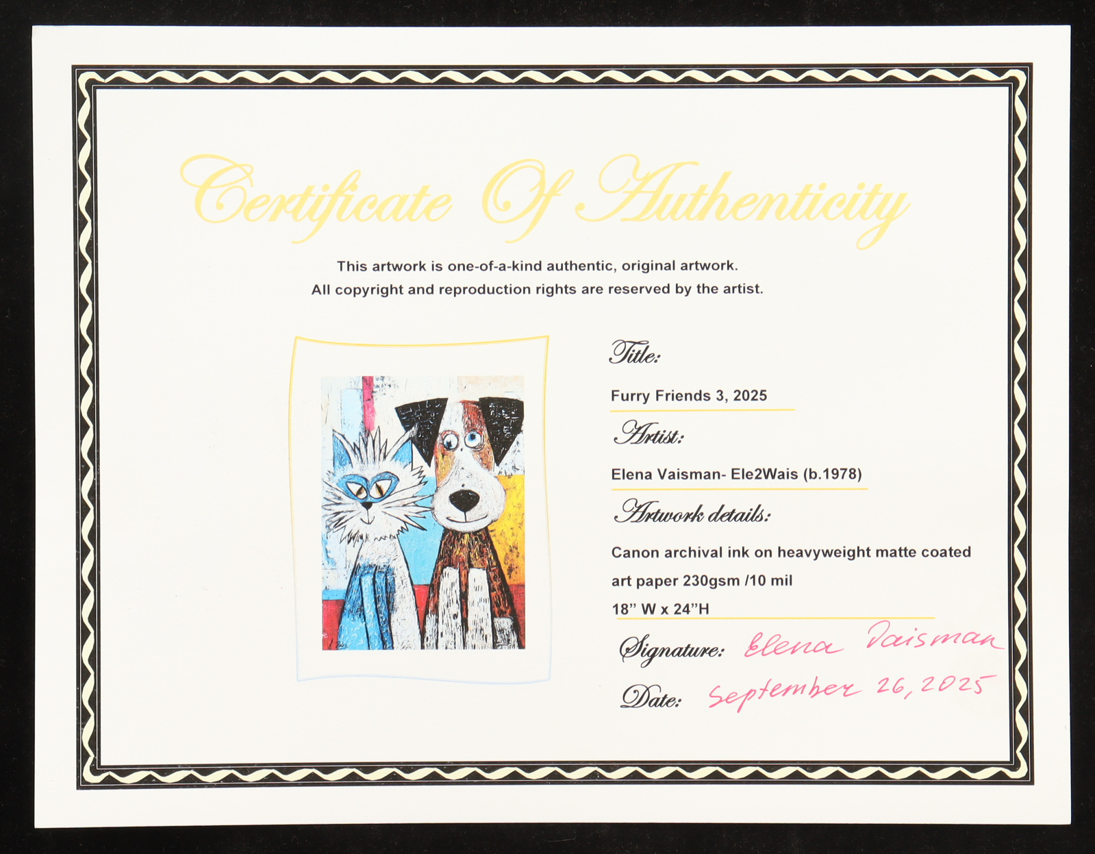 "Furry Friends 3" 2025 18x24 Original Giclee Print on Paper By Elena Vaisman (Vaisman)