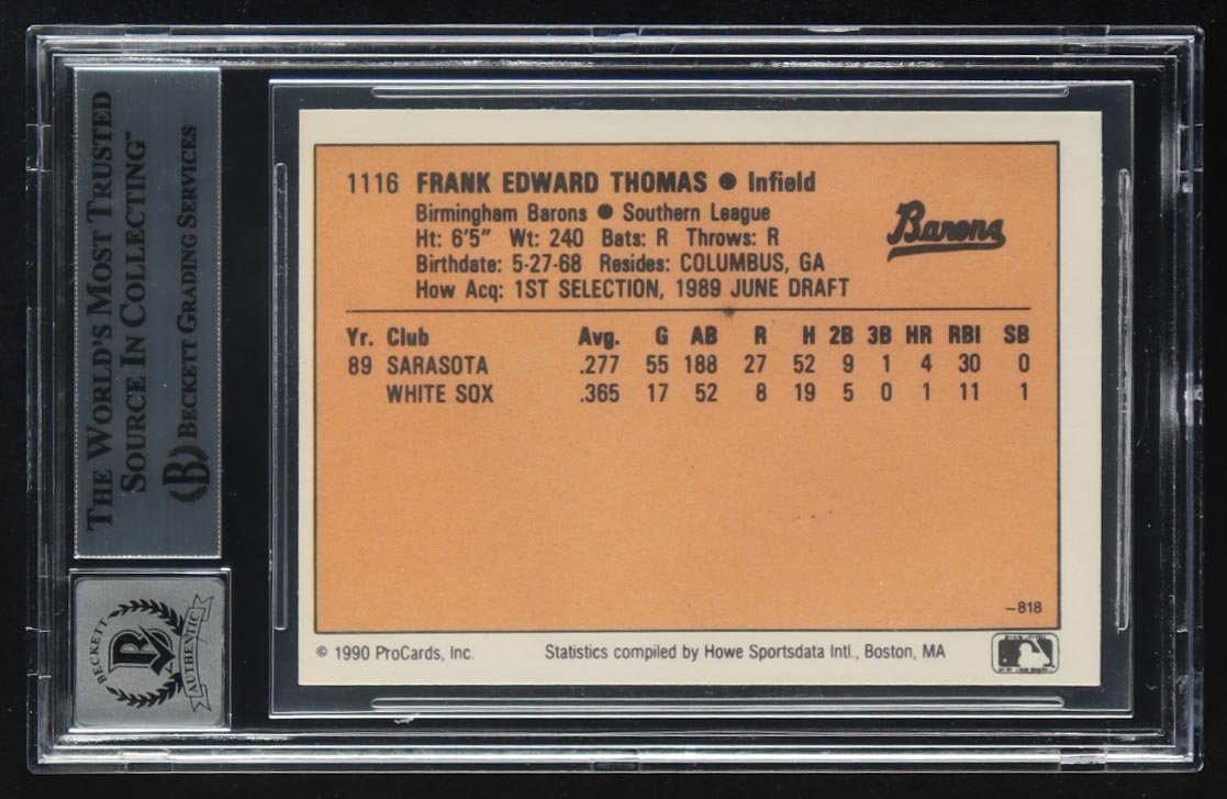 Frank Thomas Signed 1990 Birmingham Barons ProCards #1116 RC (BGS | Auto Grade BGS 10)