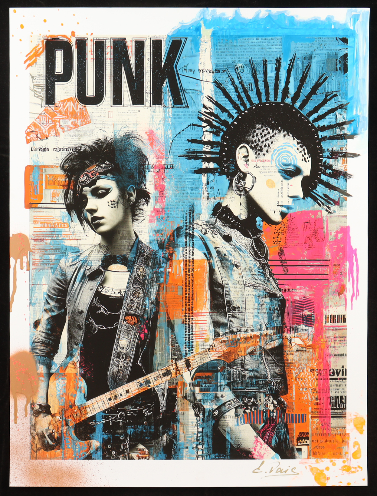 Original canon archival ink on heavyweight matte coated art paper 230 gsm / 10mil with marker and spray paint measures 18" x 24" in size. Hand-signed by the artist Elena Vaisman (Ele2Wais).