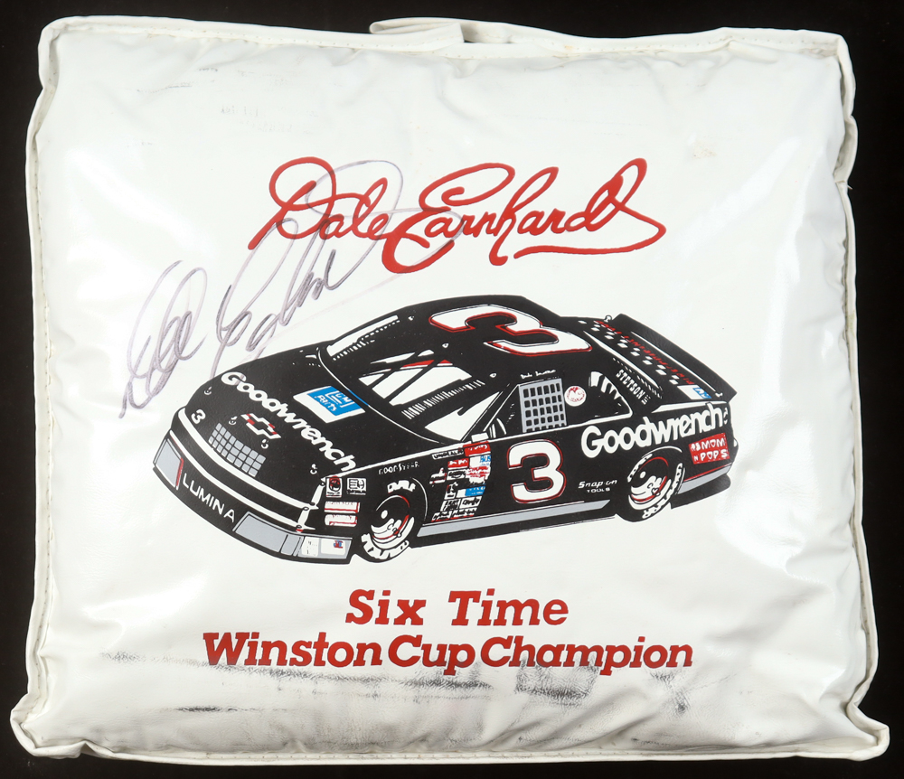 Sport Image racing apparel seat cushion measures 12" x 15". Hand-signed by Dale Earnhardt Sr. (D. 2001, HOF).