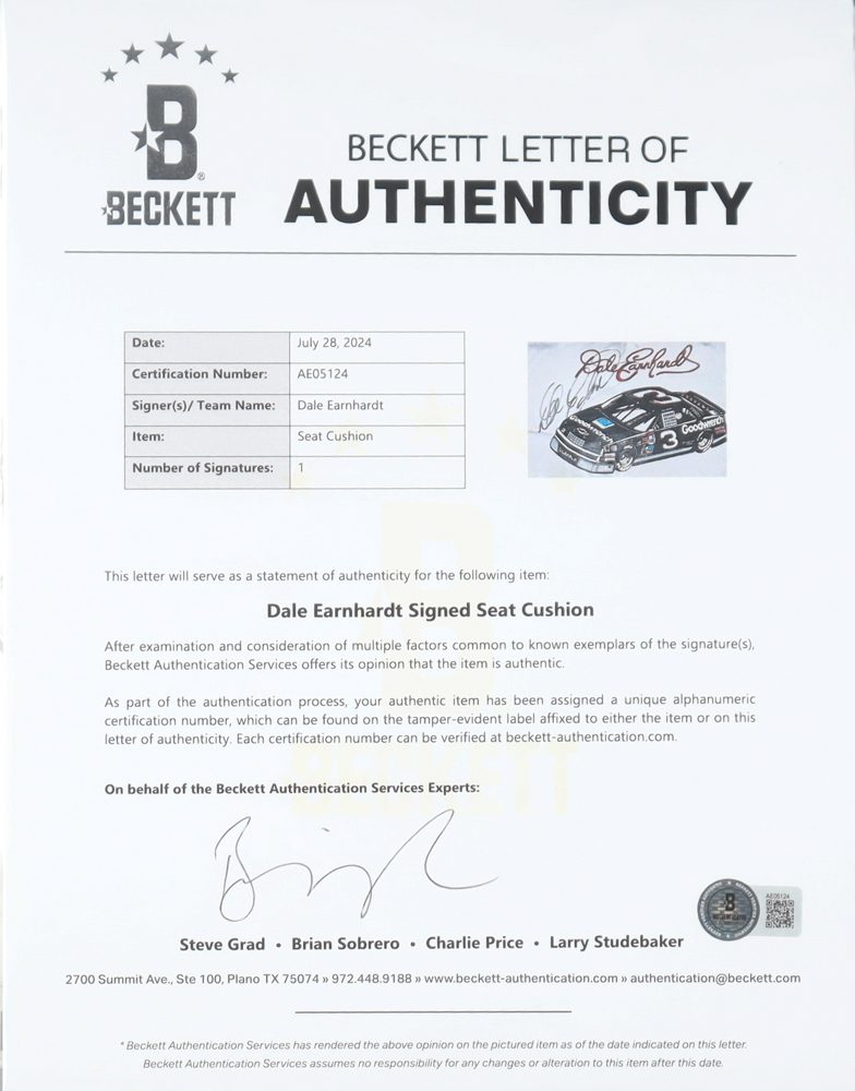 Dale Earnhardt Sr. Signed Sport Image Seat Cushion (Beckett)