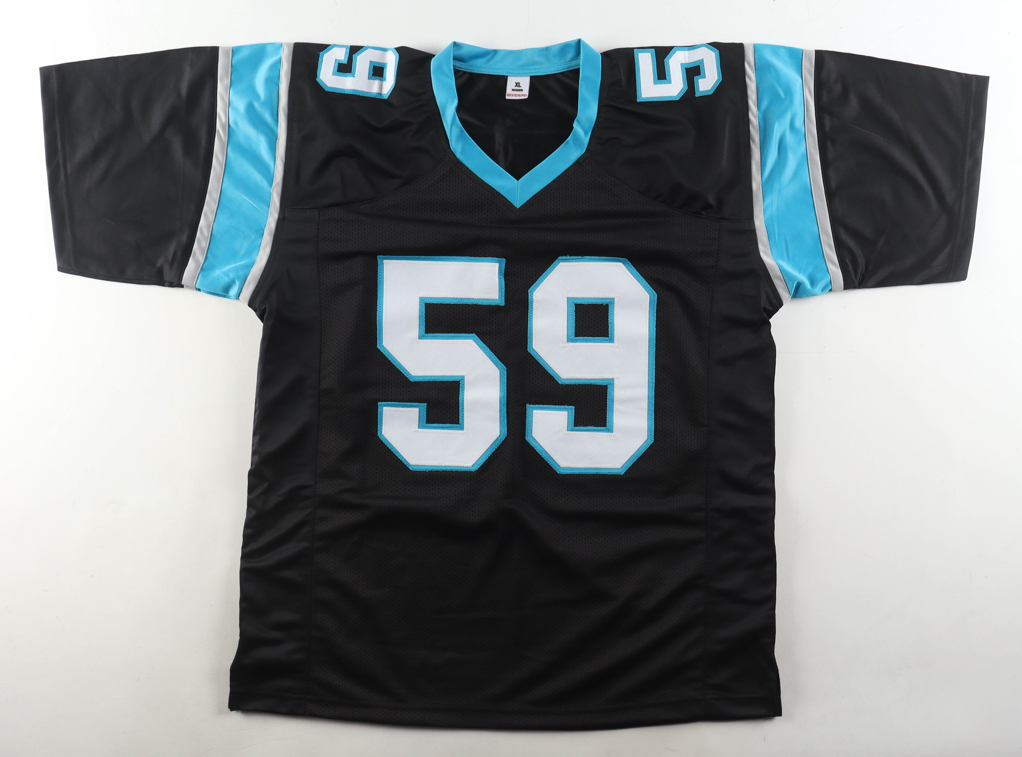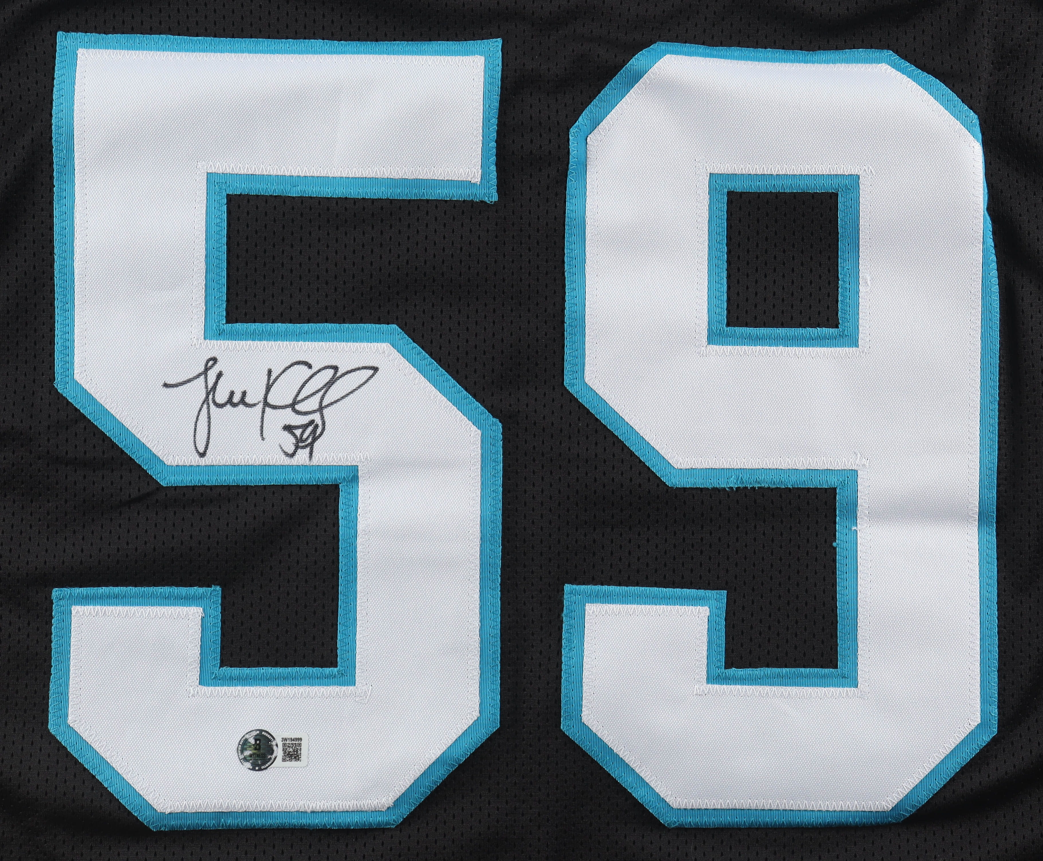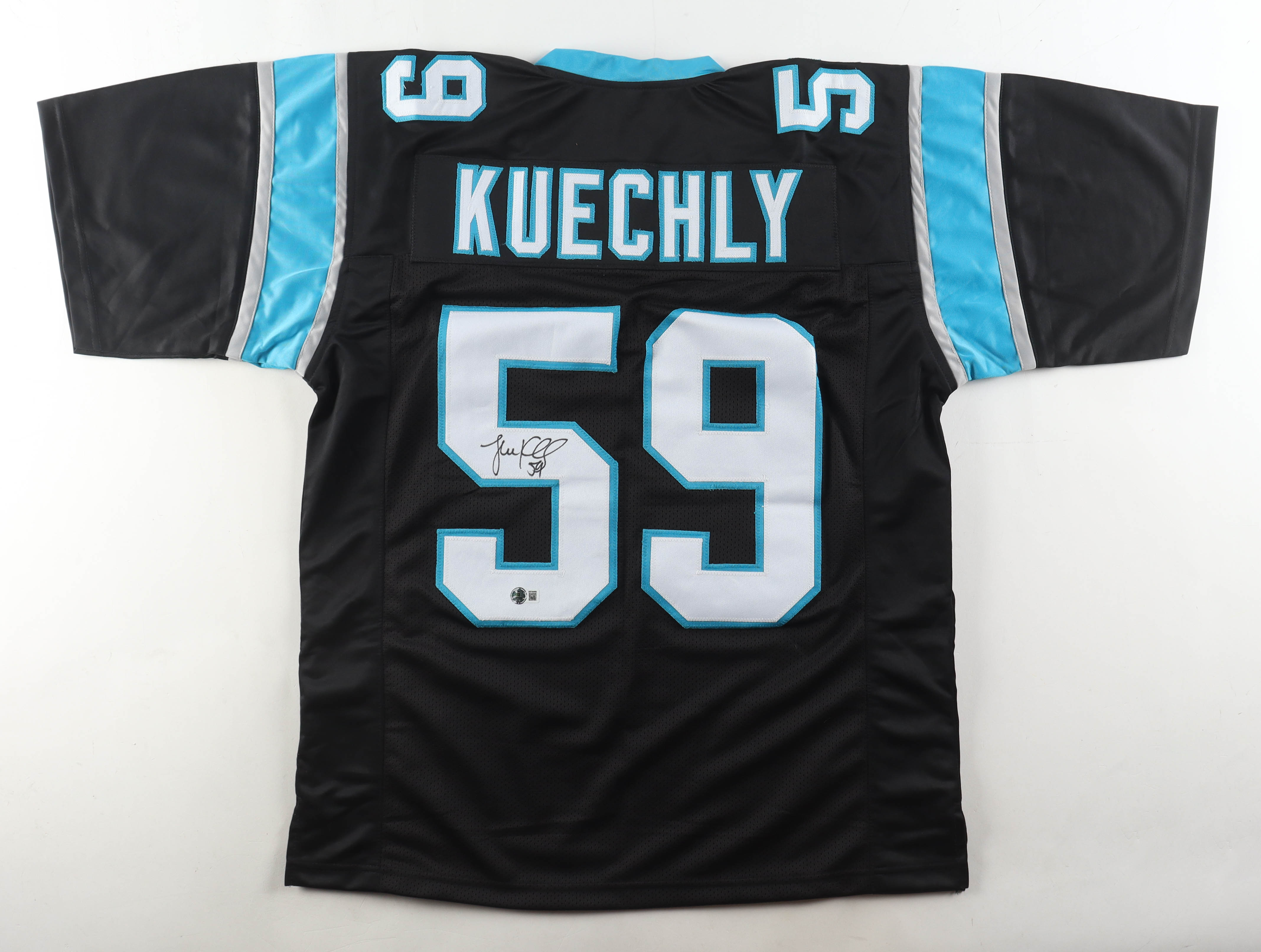 Custom jersey with everything sewn on, size XL. Hand-signed by Luke Kuechly.