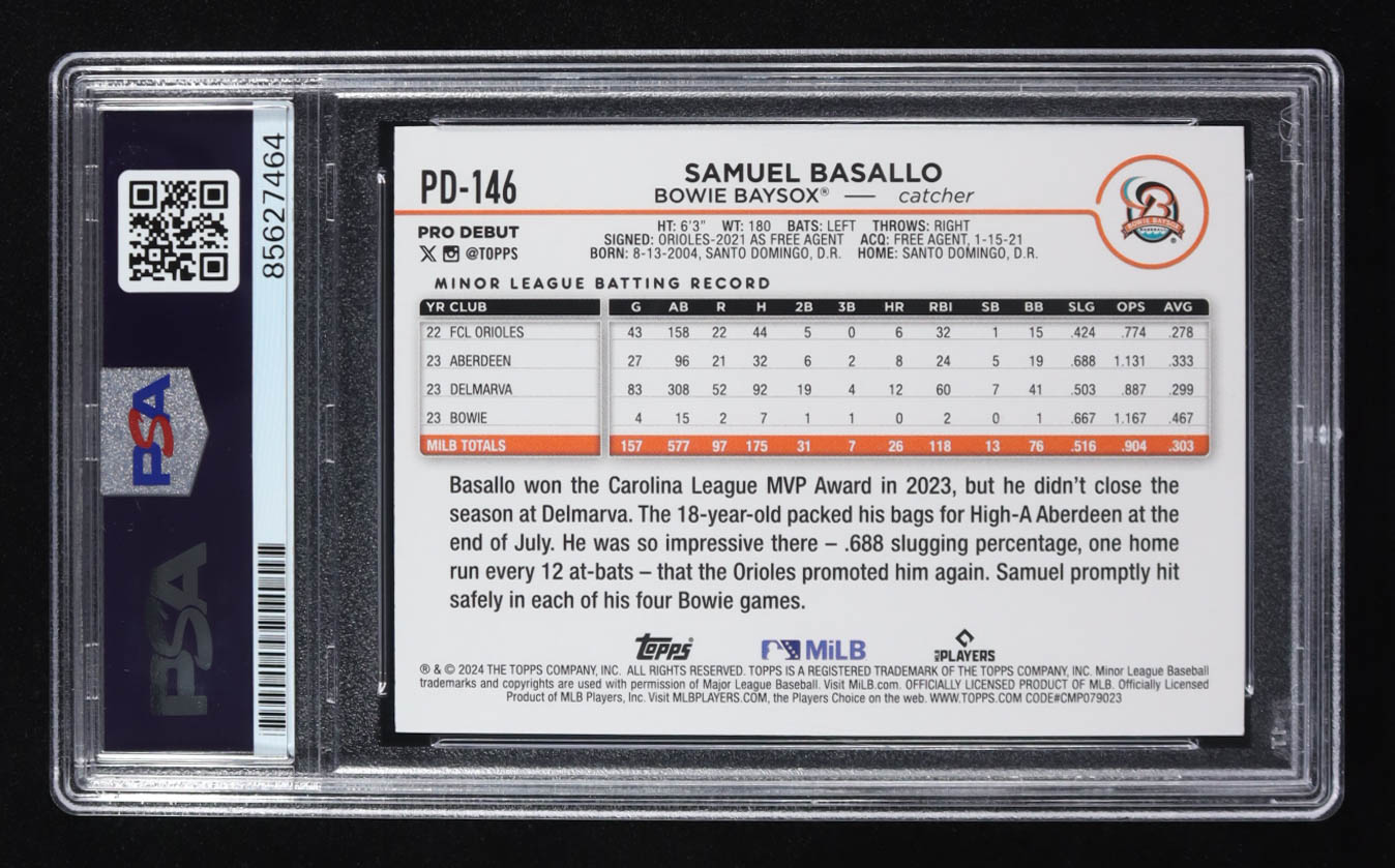 Samuel Basallo Signed 2024 Topps Pro Debut #PD146 RC (PSA | Auto Grade PSA 10)
