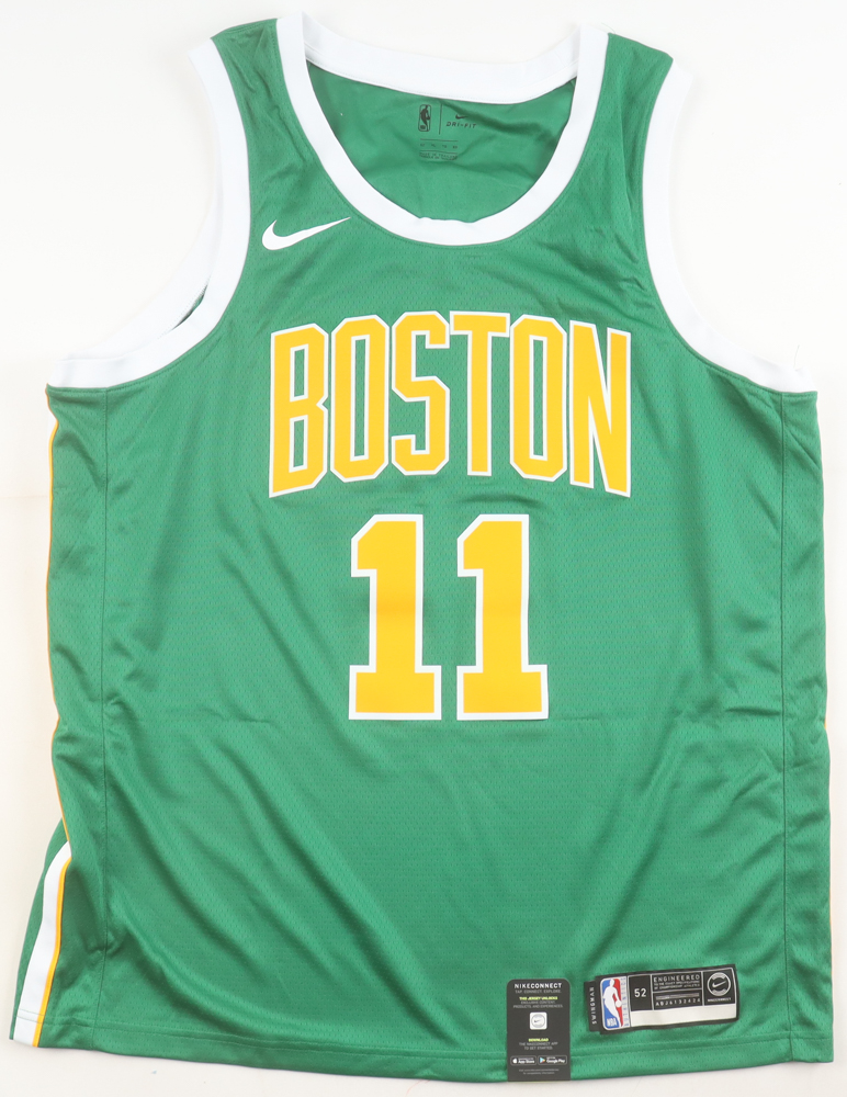 Nike authentic jersey with everything pressed on, size 52. Hand-signed by Kyrie Irving (Boston Celtics).
