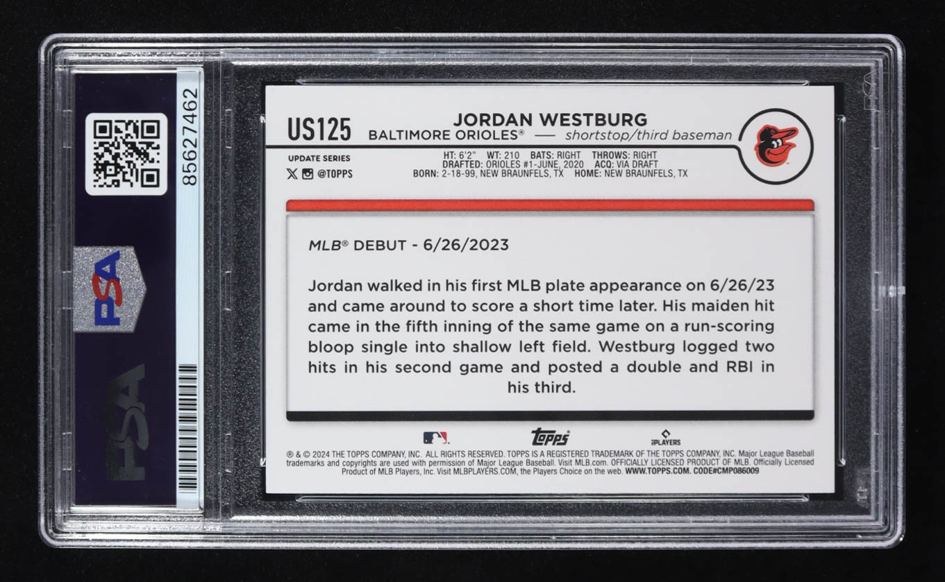 Jordan Westburg Signed 2024 Topps Update #US125 RC (PSA | Auto Grade PSA 10)
