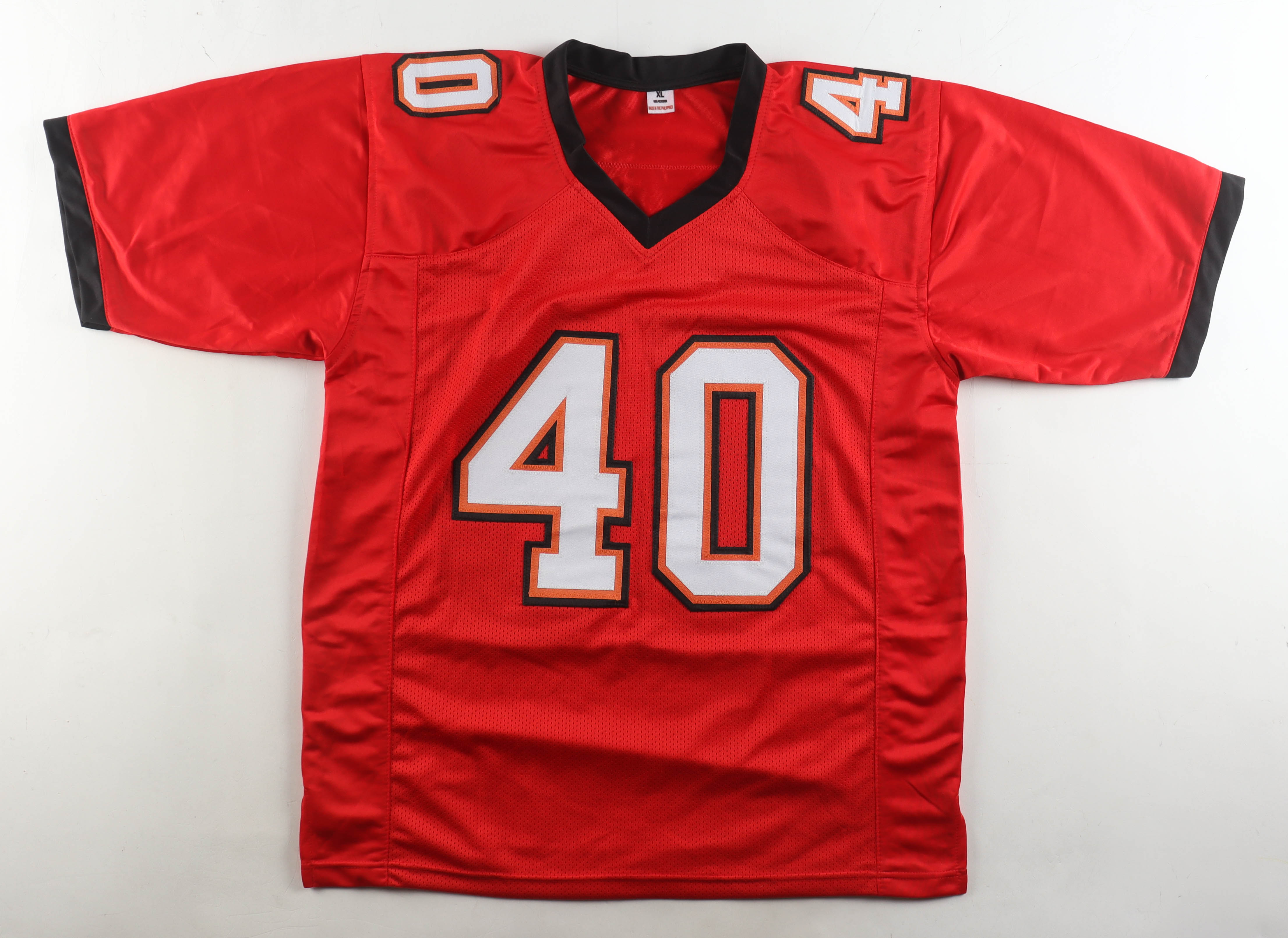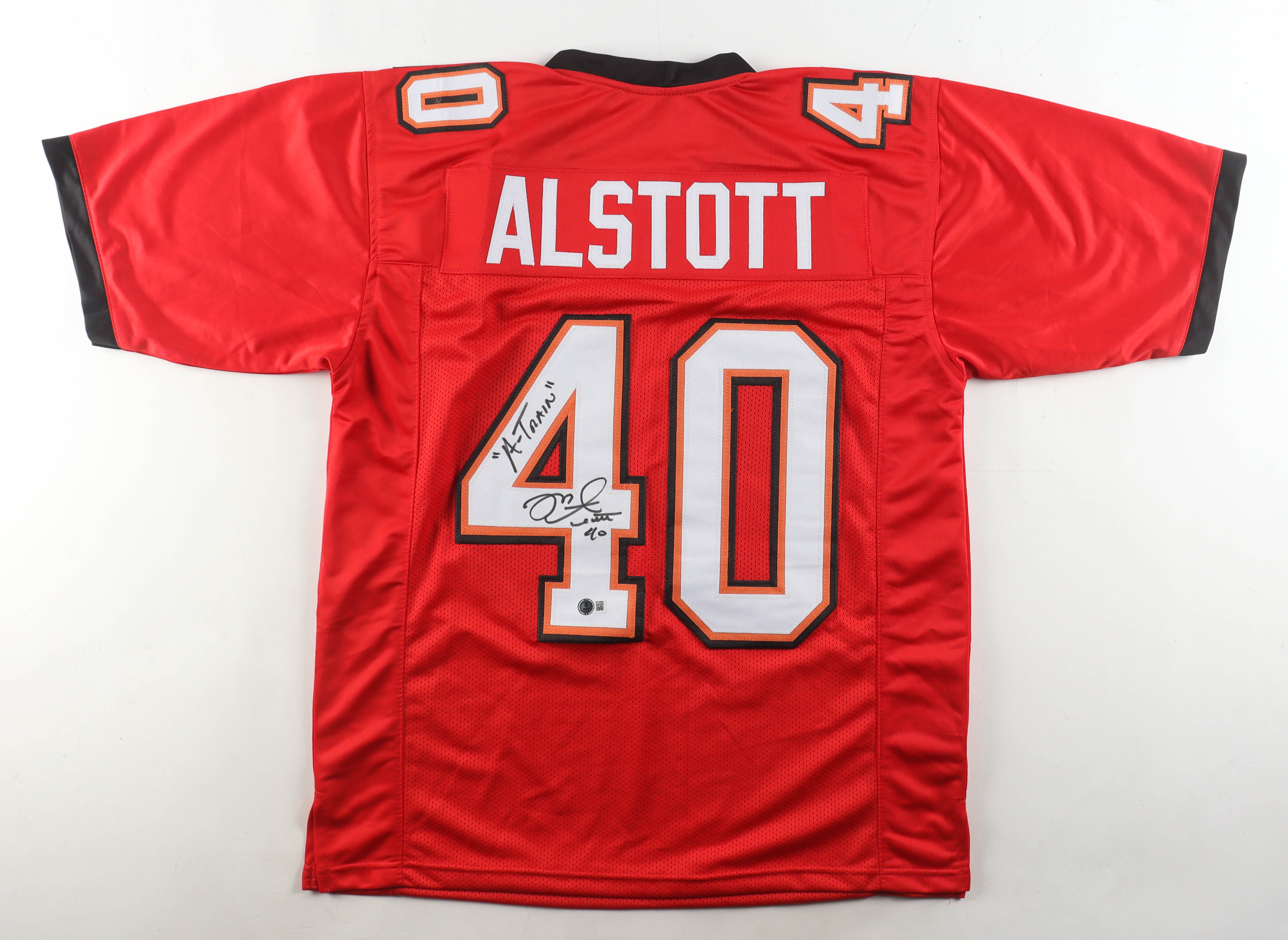 Custom jersey. Everything sewn on, size XL. Hand-signed and inscribed by Mike Alstott.