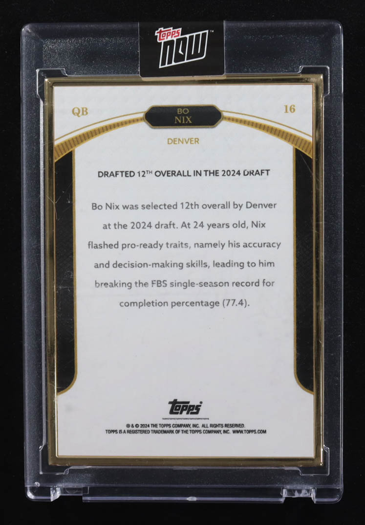 Bo Nix 2024 Topps Now Rookie Campaign Quarterbacks Blue #16 / Drafted 12th RC #7/75