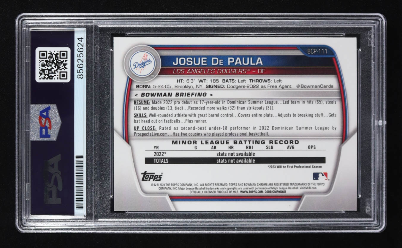 Josue De Paula Signed 2023 Bowman Chrome Prospects #BCP111 RC (PSA | Auto Grade PSA Authentic)