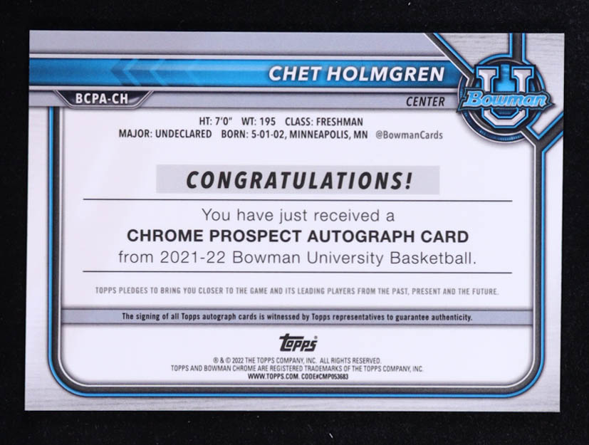 Chet Holmgren 2021-22 Bowman Chrome University Autographs #BCPACH RC