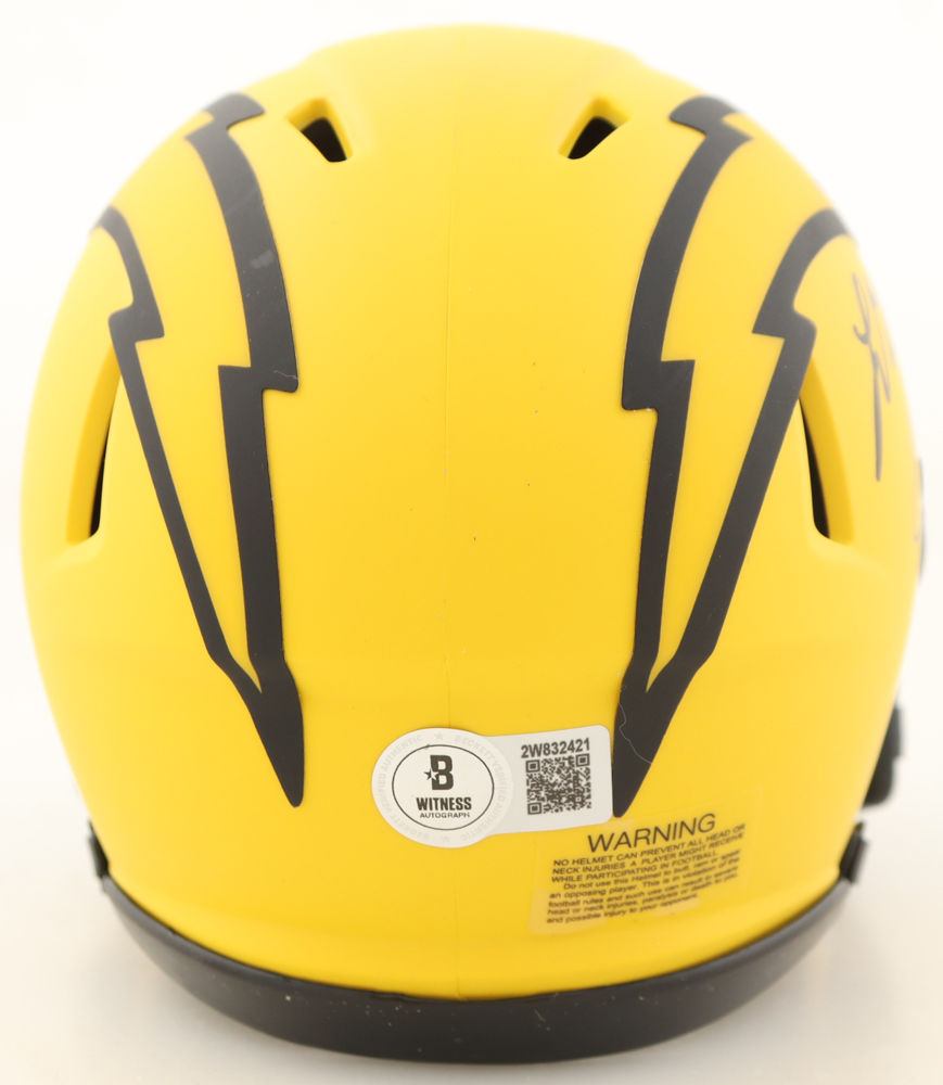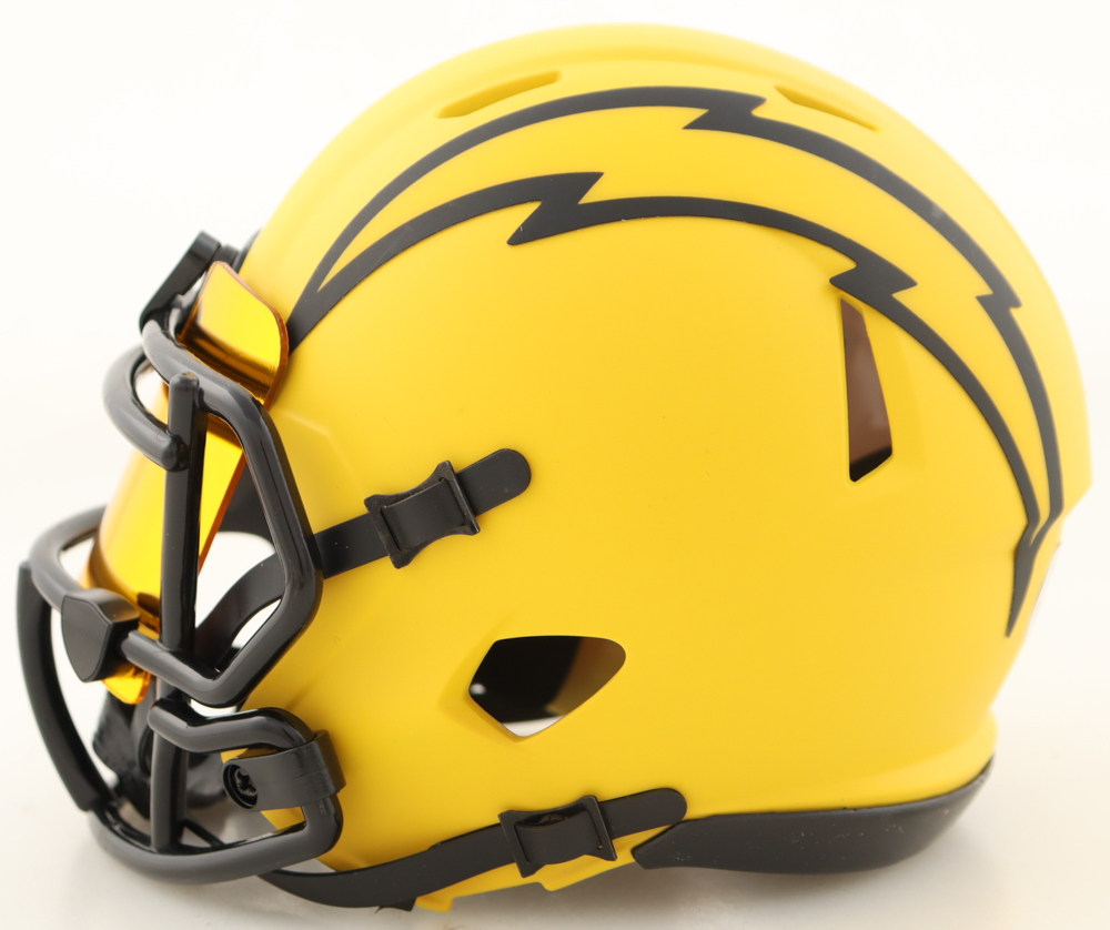 Riddell San Diego Chargers Rave Alternate Speed mini helmet with visor. Hand-signed by Ladd McConkey.