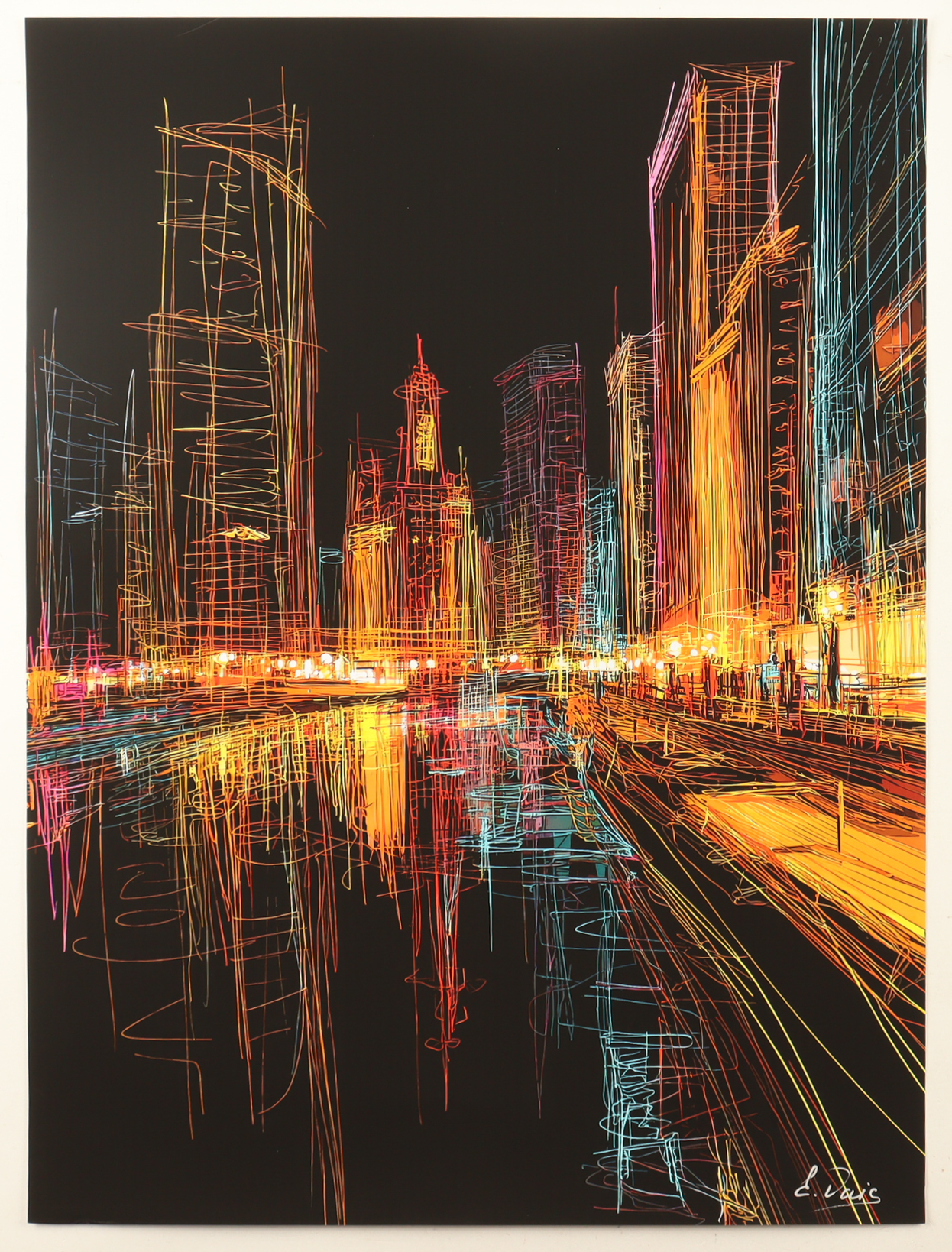 "City Lights" 2025 18x24 Original Giclee Print on Paper By Elena Vaisman (Vaisman)