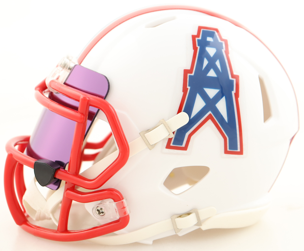 Riddell Houston Oilers Speed mini helmet with visor. Hand-signed and inscribed by Earl Campbell (HOF).