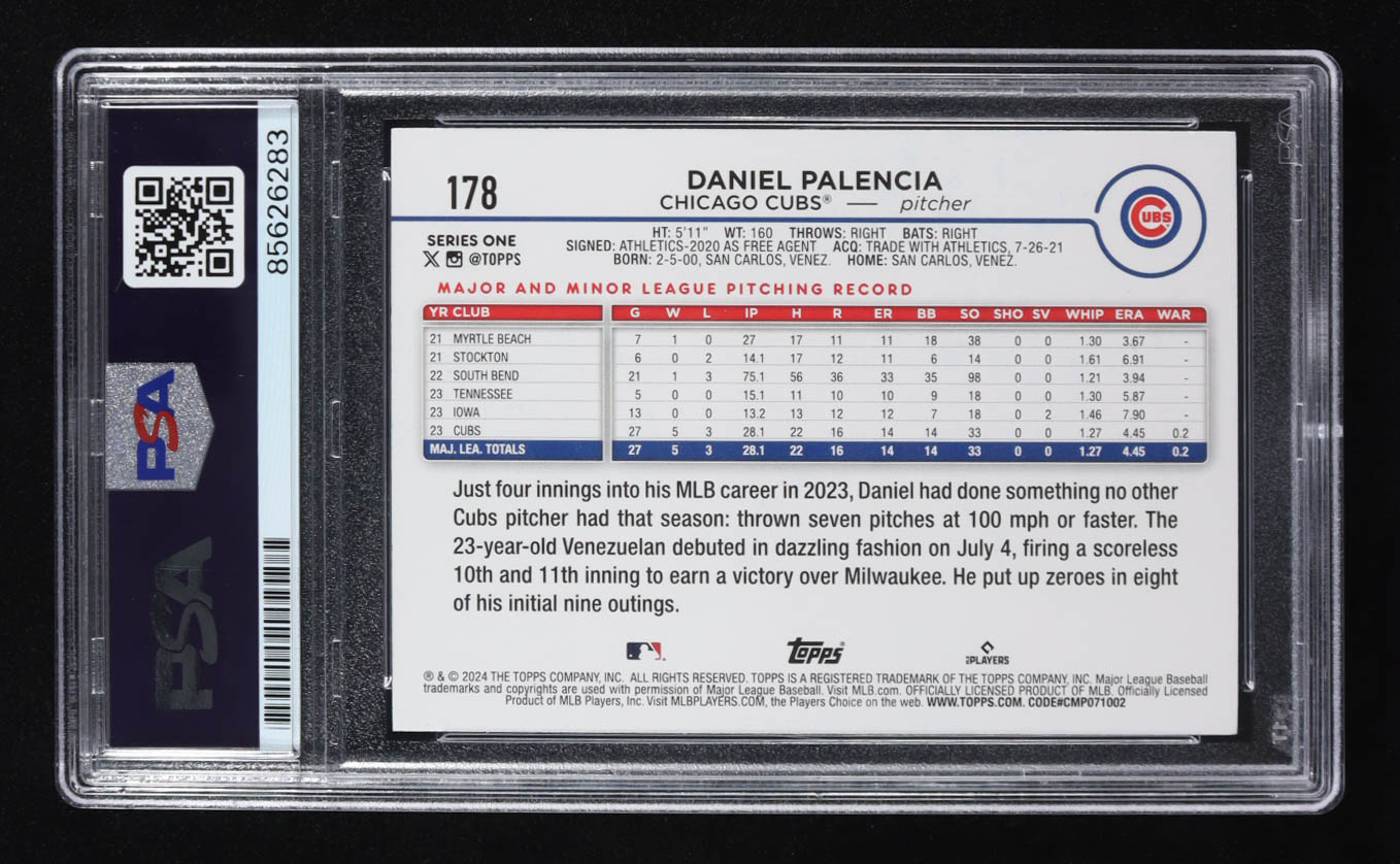 Daniel Palencia Signed 2024 Topps #178 RC (PSA | Auto Grade PSA Authentic)