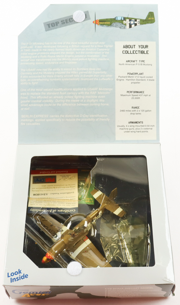 Bill Overstreet Signed LE P-51B Mustang 1:72 Model Plane Inscribed "Berlin Express" with Orignal Packaging (PSA)