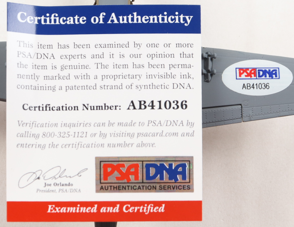 Model Plane measures approximately 6" x 6" in size and has been hand-signed and inscribed by Bill Overstreet (D. 2013). Original packaging included.