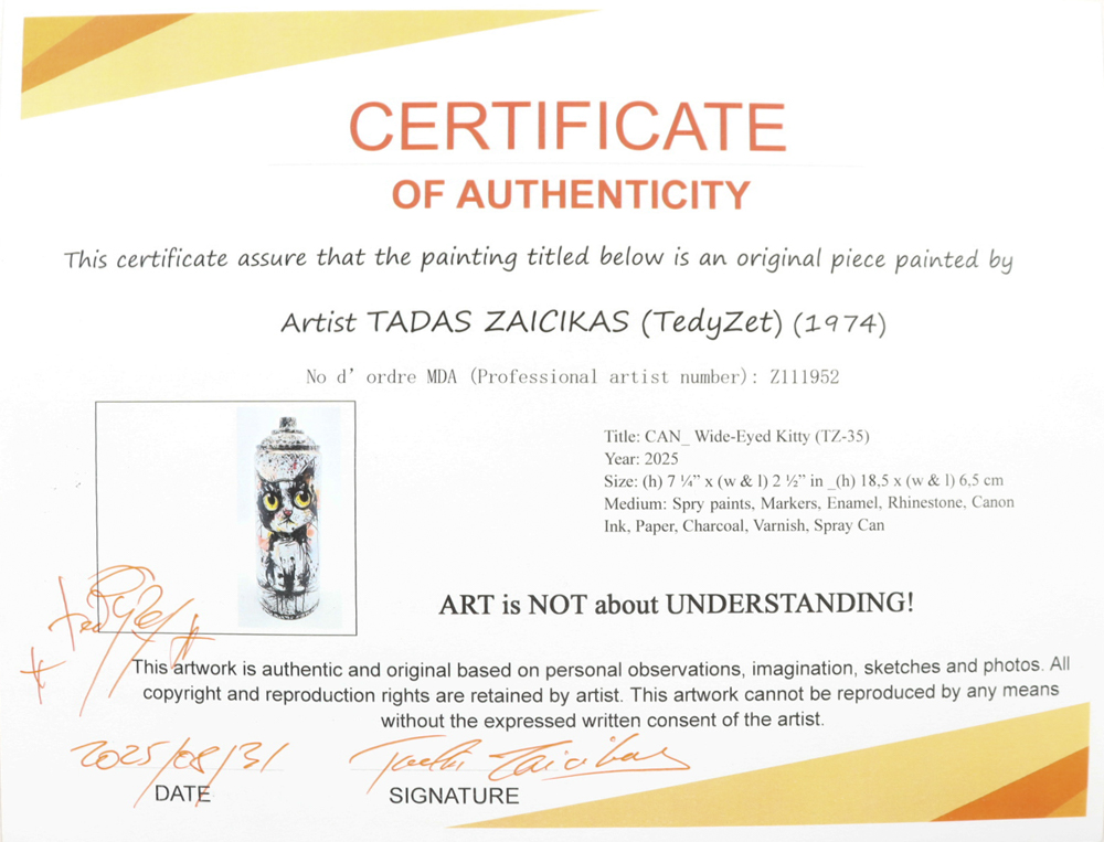 Spray can measures approximately 8" in height. Hand-signed by the artist, Tadas Zaicikas.