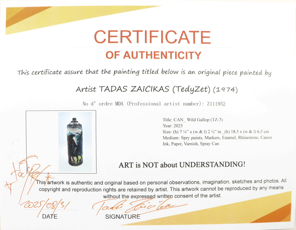 Spray can measures approximately 8" in height. Hand-signed by the artist, Tadas Zaicikas.