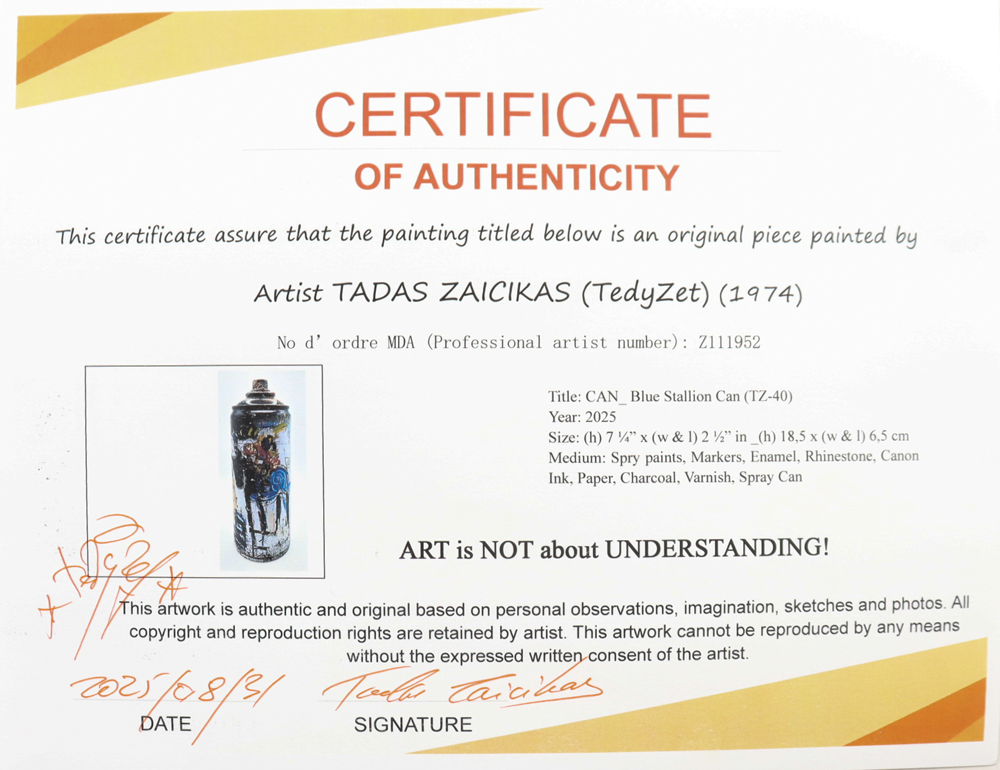 Spray can measures approximately 8" in height. Hand-signed by the artist, Tadas Zaicikas.