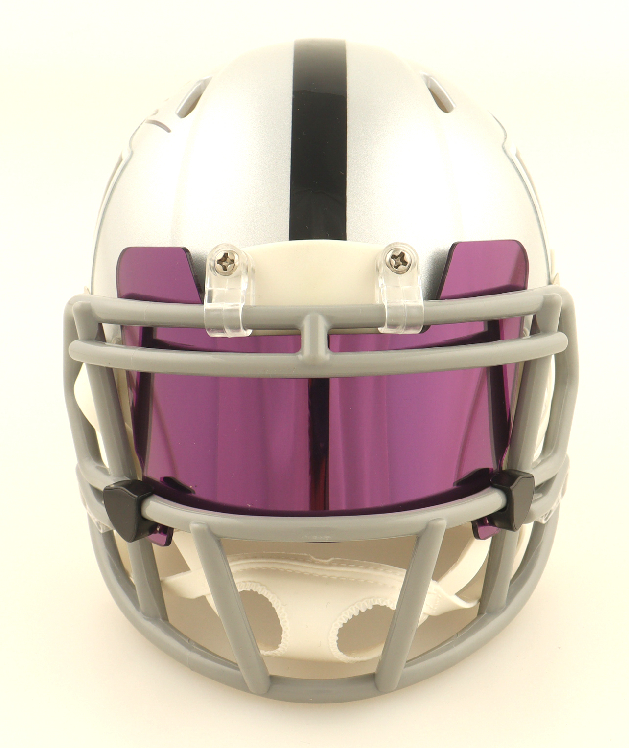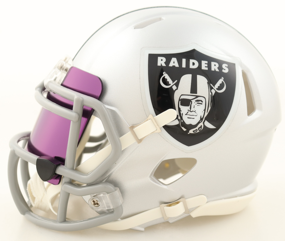 Riddell Oakland Raiders Speed mini helmet with visor. Hand-signed by Marcus Allen (HOF).
