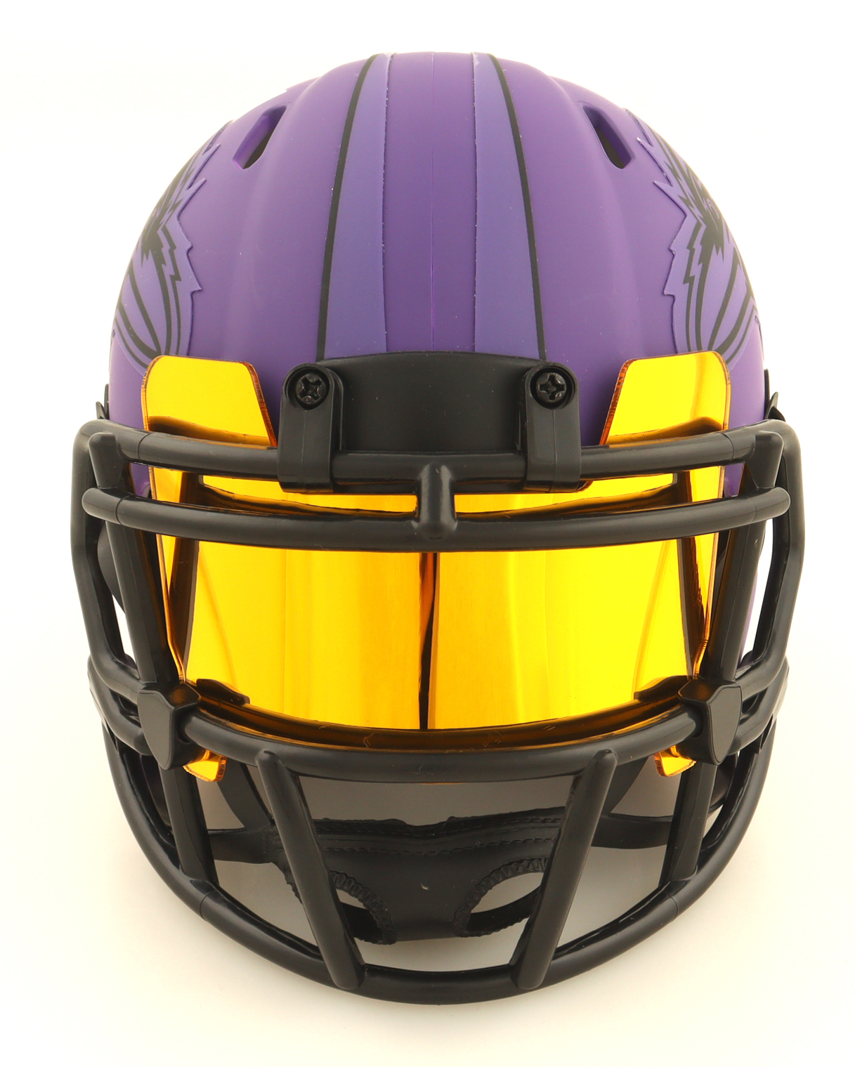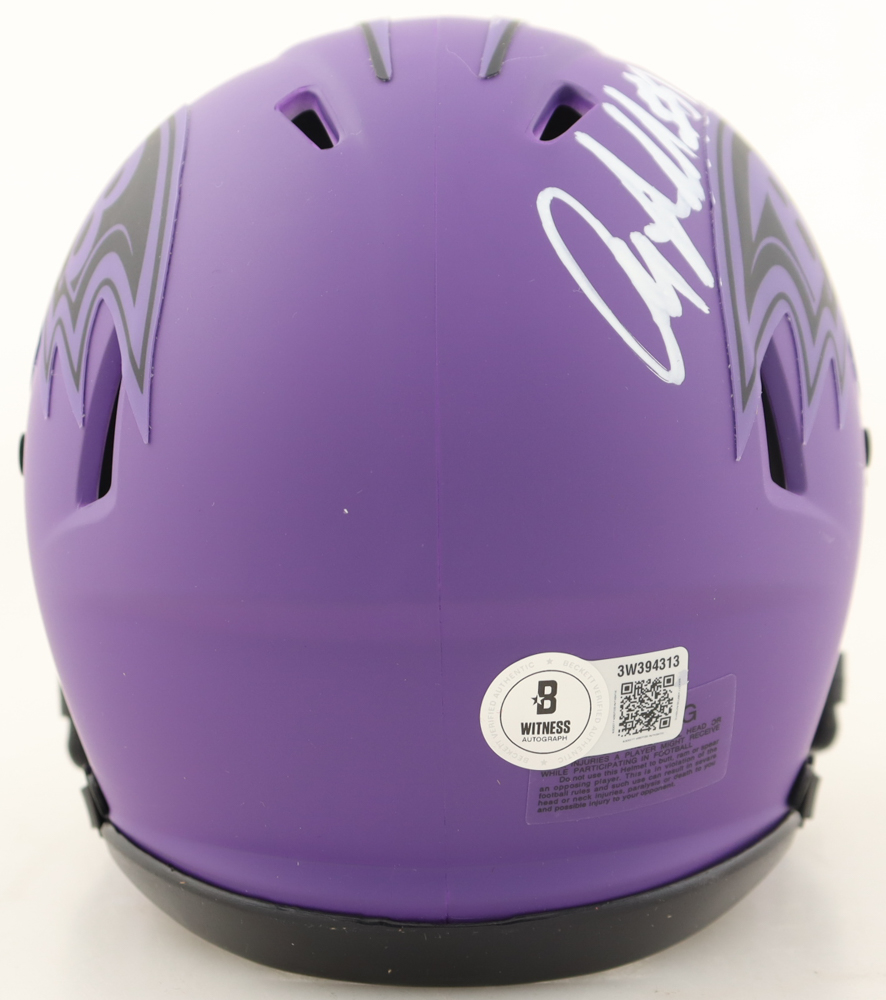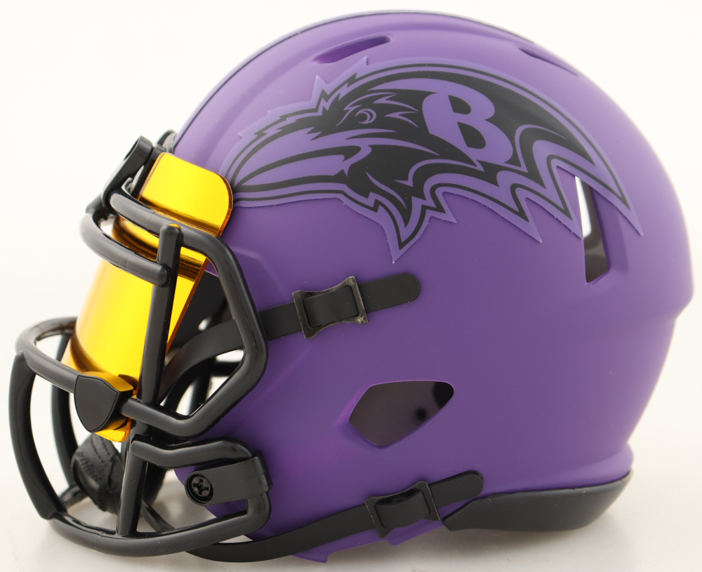 Riddell Baltimore Ravens Rave Alternate speed mini helmet with visor. Hand-signed by Anquan Boldin.