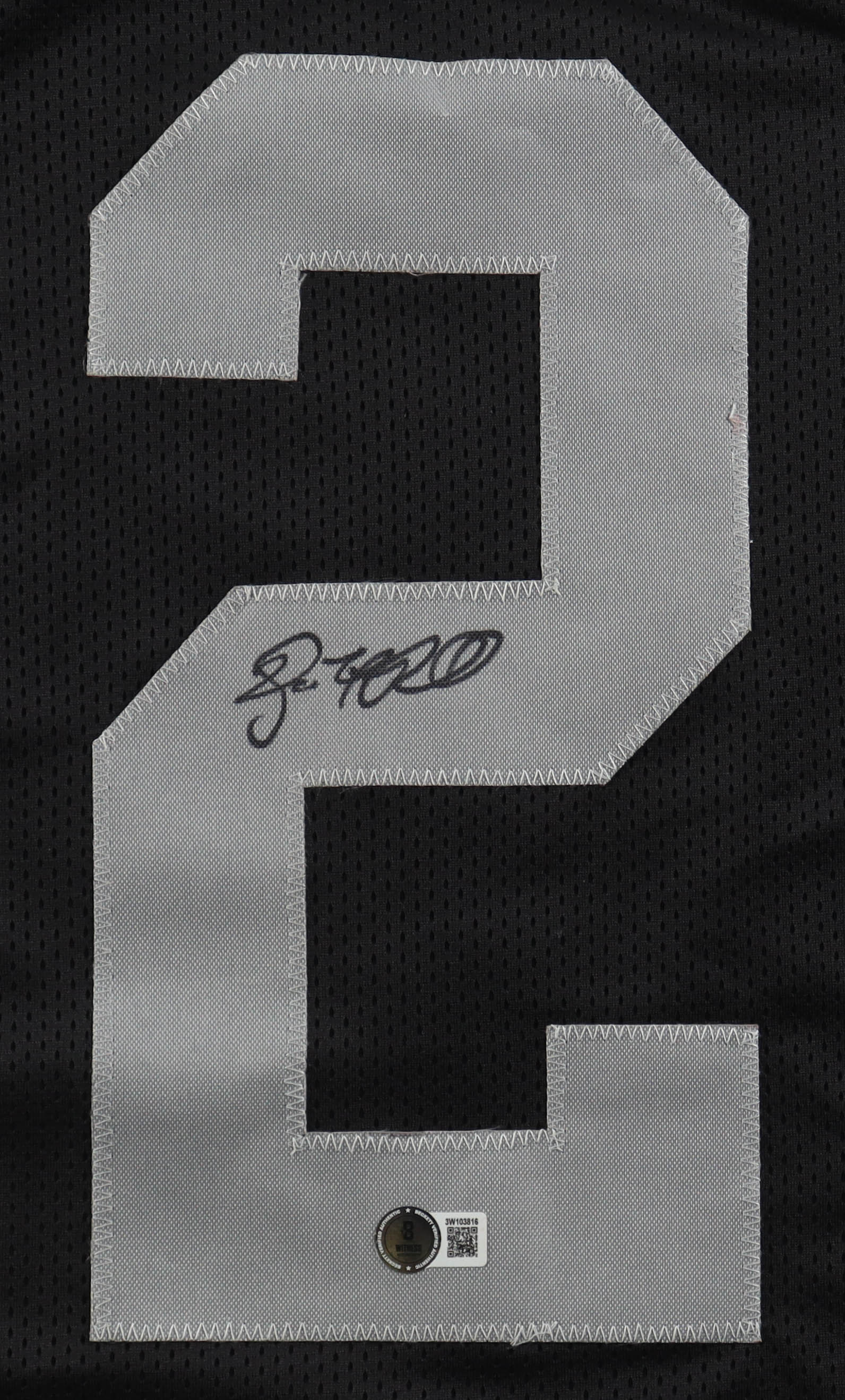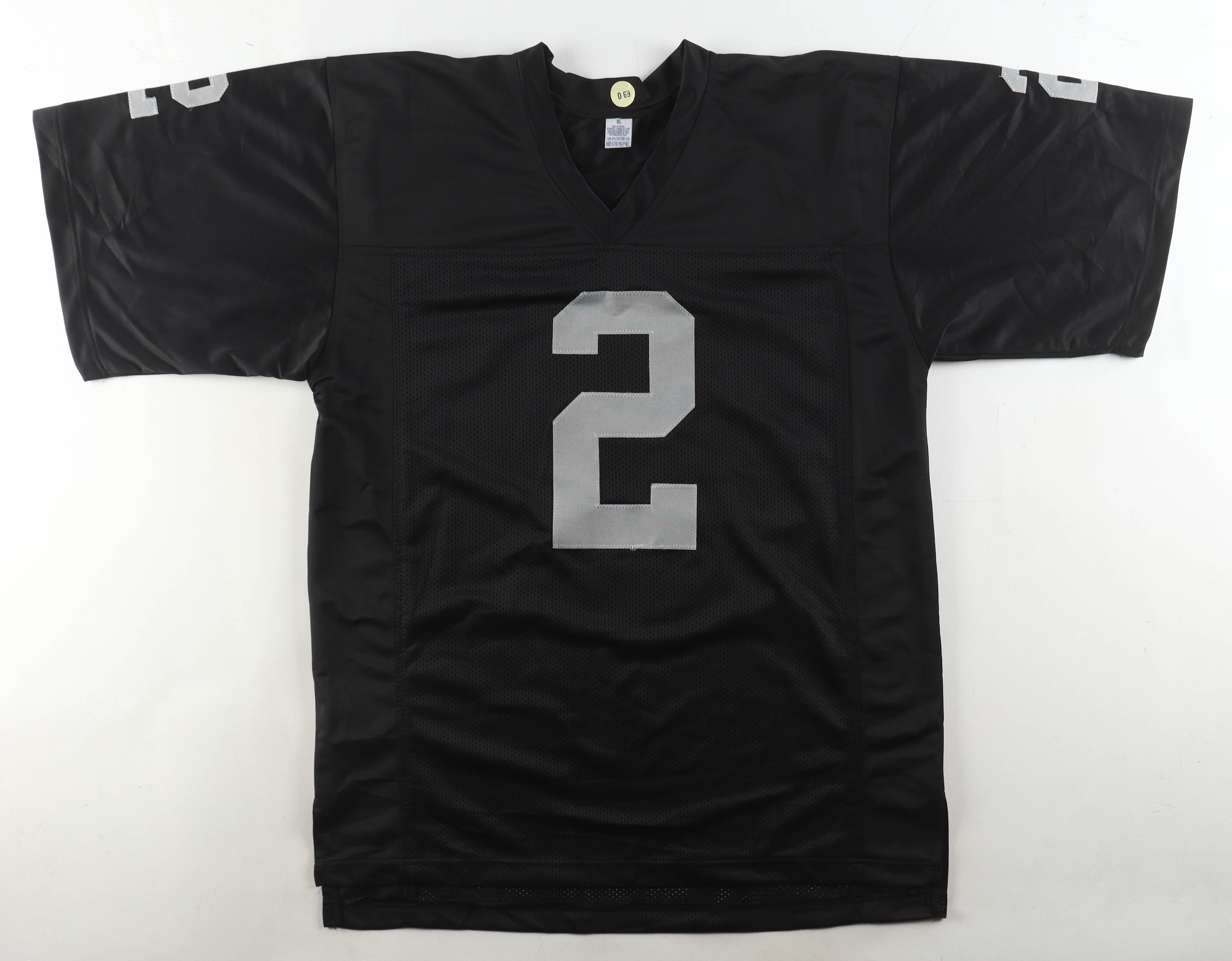 Custom jersey with everything sewn on, size XL. Has been hand-signed by Jamarcus Russell.