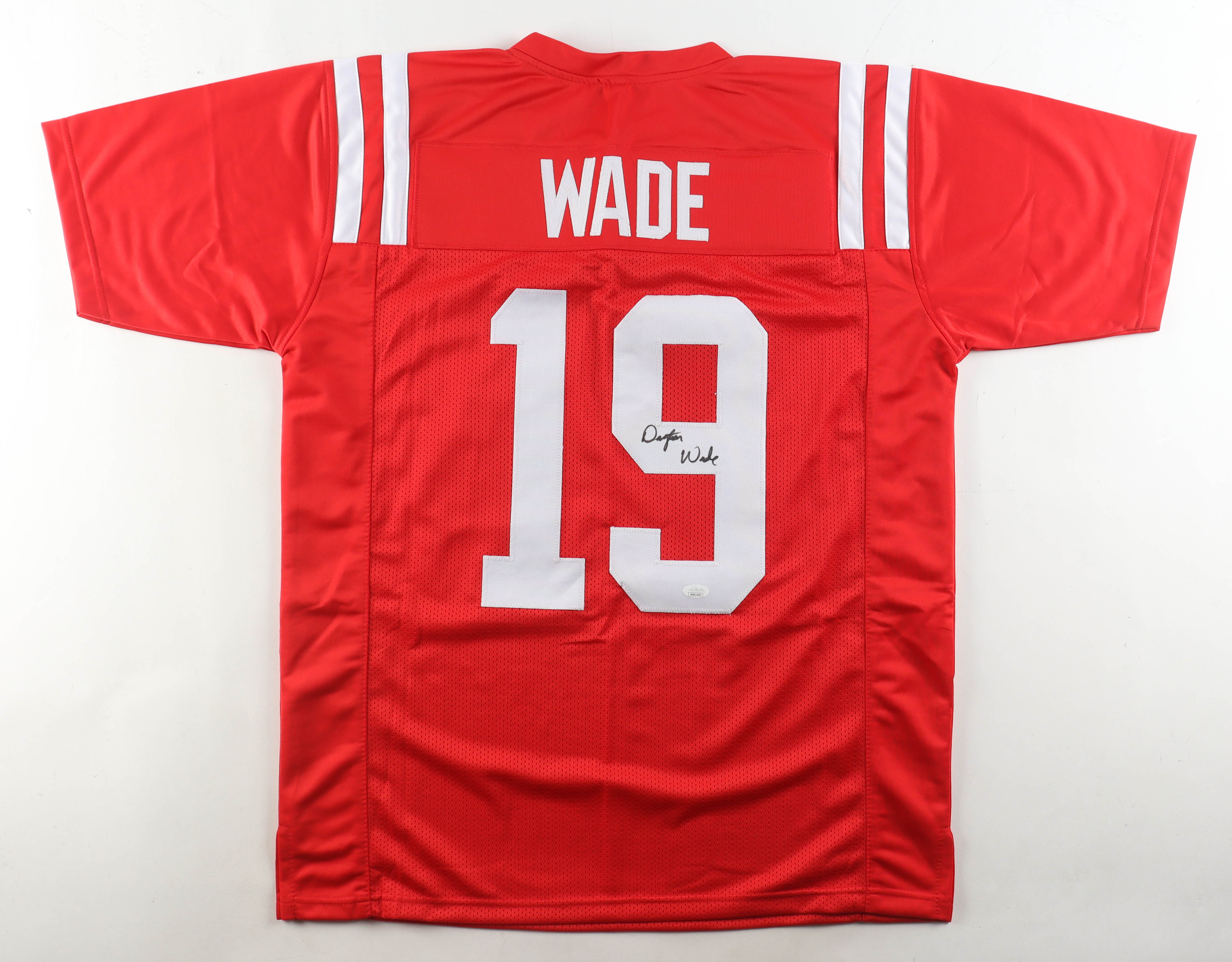 Custom jersey with everything sewn on, size XL. Hand-signed by Dayton Wade.