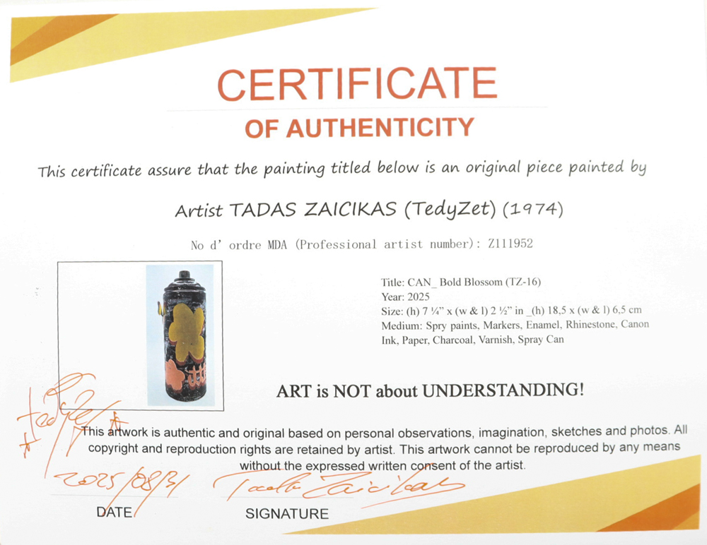 Spray can measures approximately 8" in height. Hand-signed by the artist, Tadas Zaicikas.