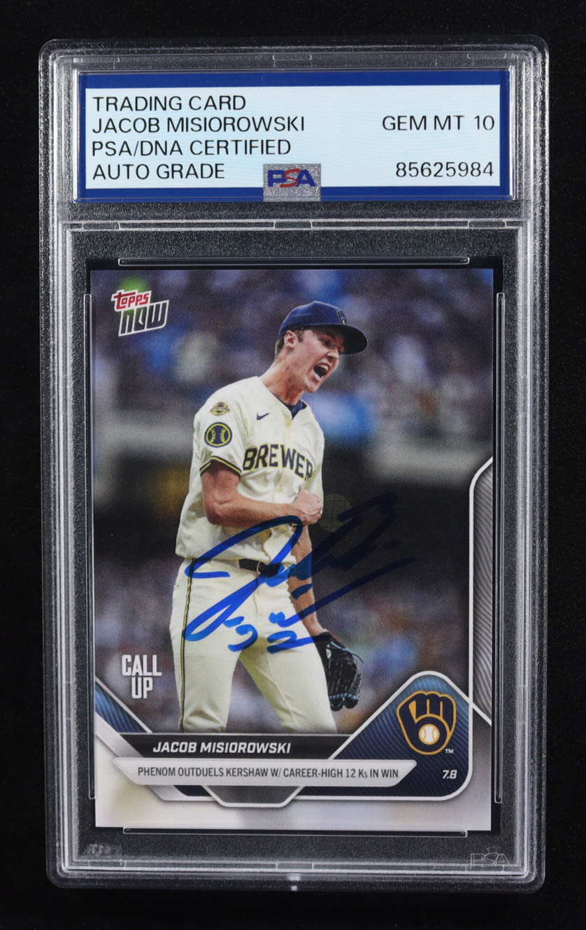 Jacob Misiorowski Signed 2025 Topps Now #402 RC (PSA | Auto Grade PSA 10)