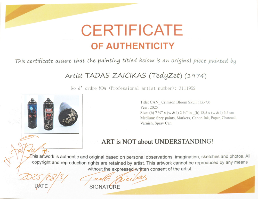 Spray can measures approximately 8" in height. Hand-signed by the artist, Tadas Zaicikas.