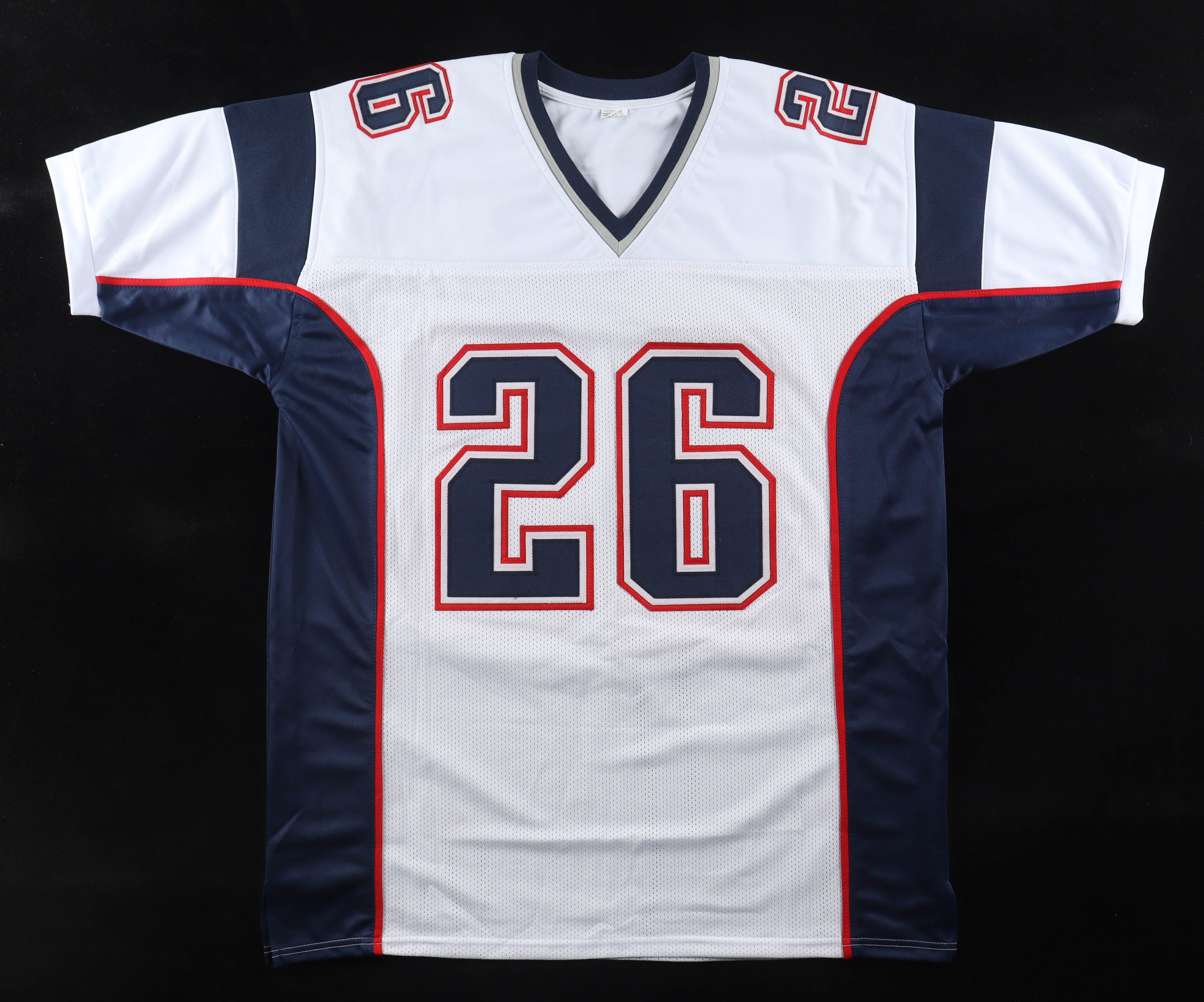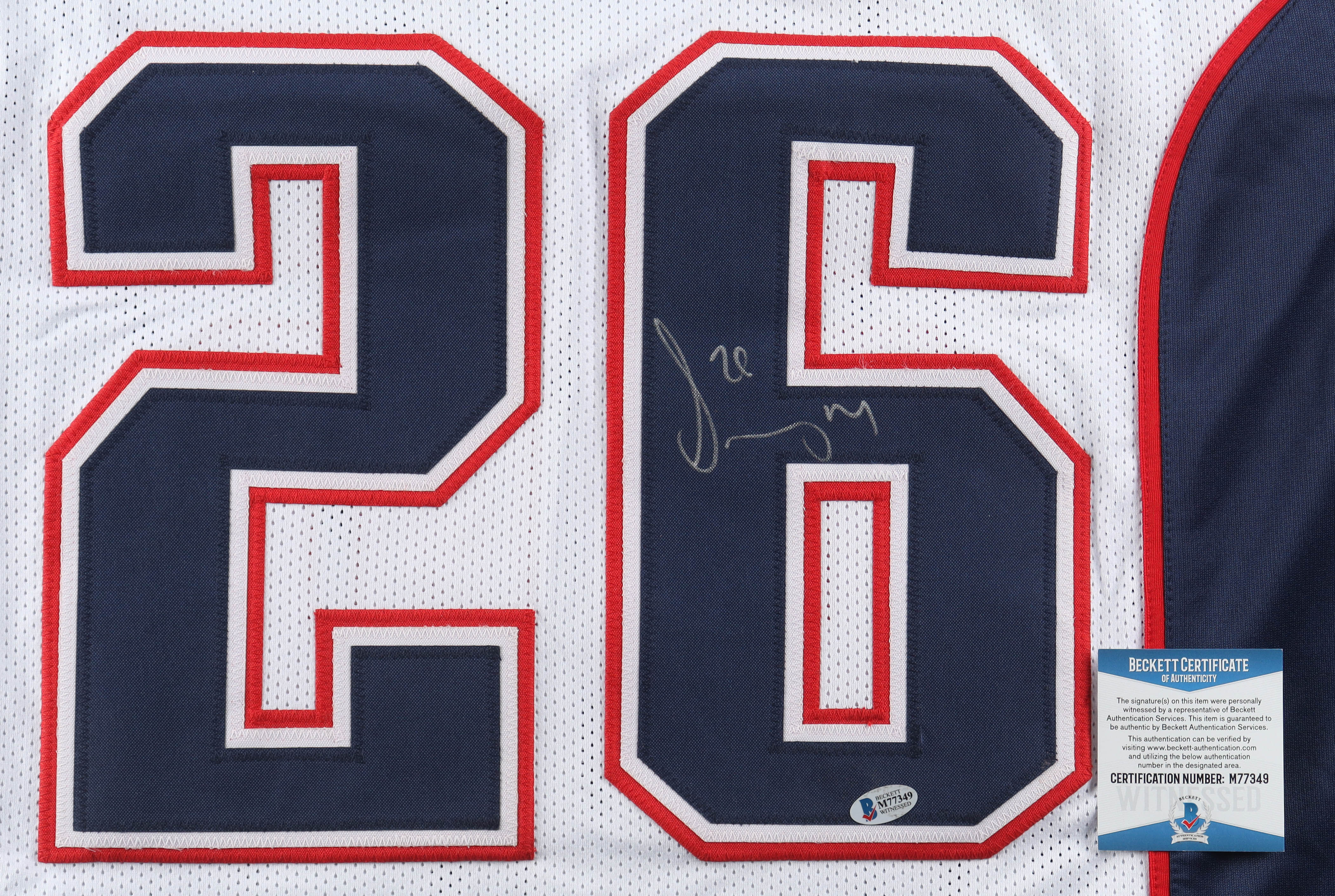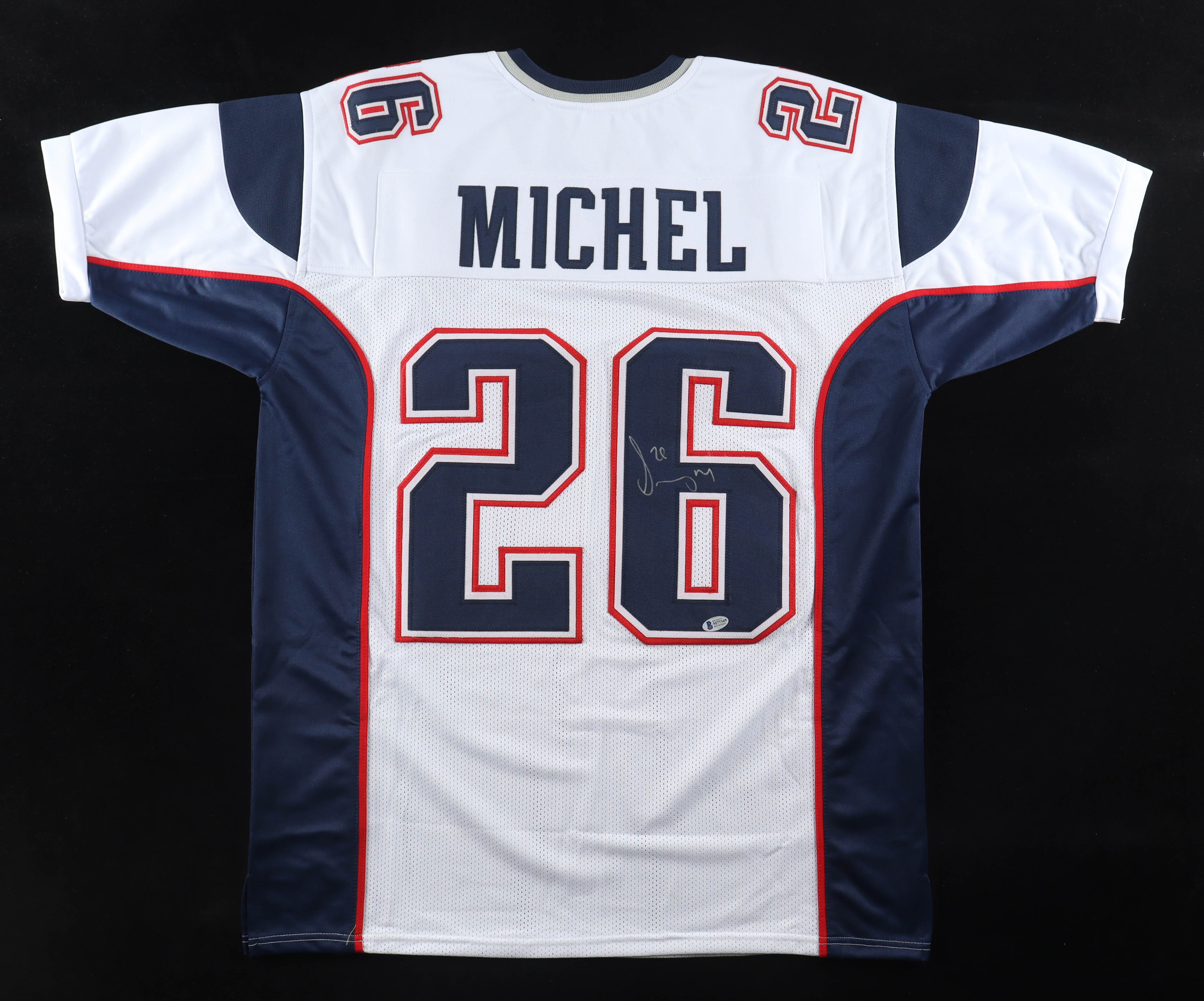Custom jersey with everything sewn on, size XL. Hand-signed by Sony Michel.