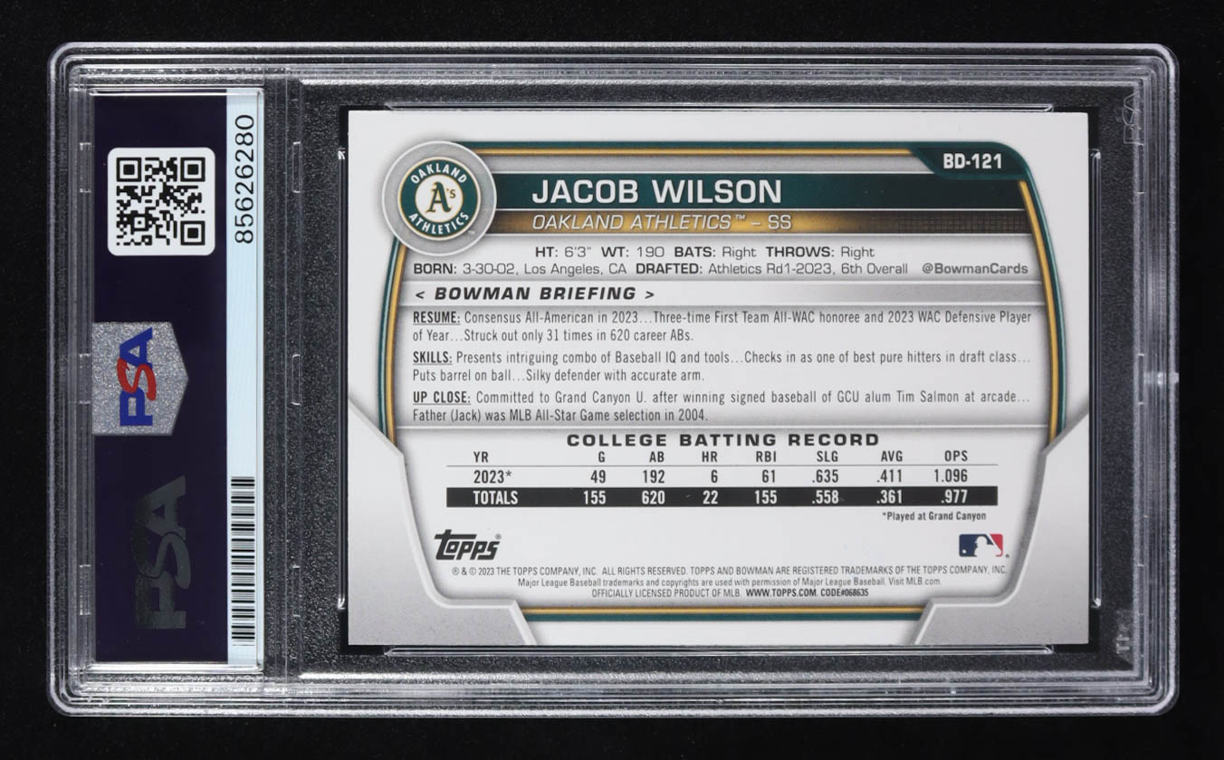 Jacob Wilson Signed 2023 Bowman Draft #BD121 RC (PSA | Auto Grade PSA Authentic)