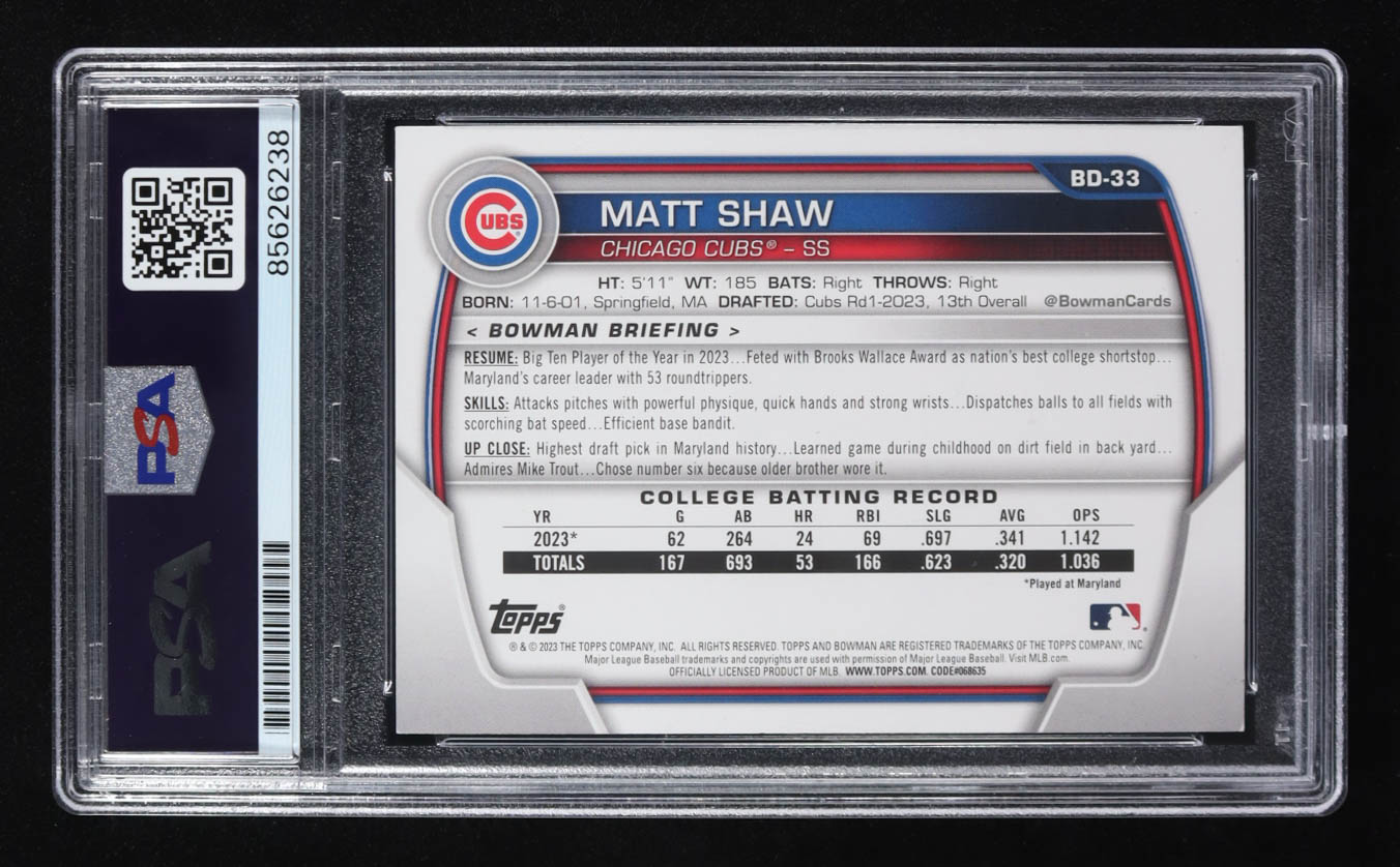 Matt Shaw Signed 2023 Bowman Draft #BD33 RC (PSA | Auto Grade PSA 10)