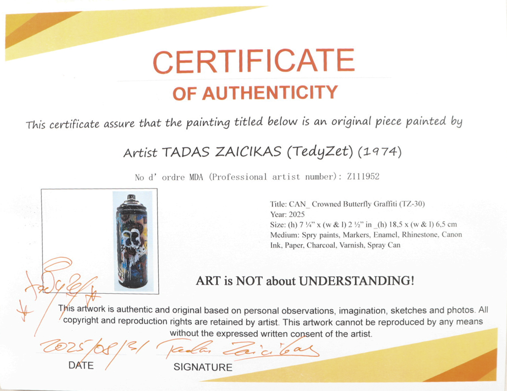 "Crowned Butterfly Graffiti" Original Spray Can Art by Tadas Zaicikas | TedyZet (Zaicikas)