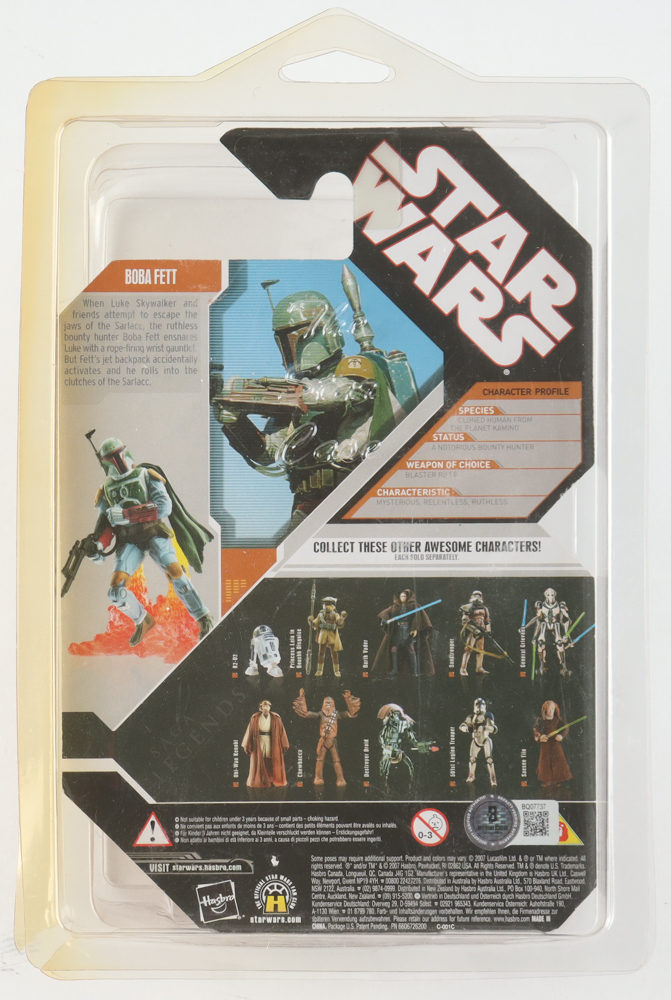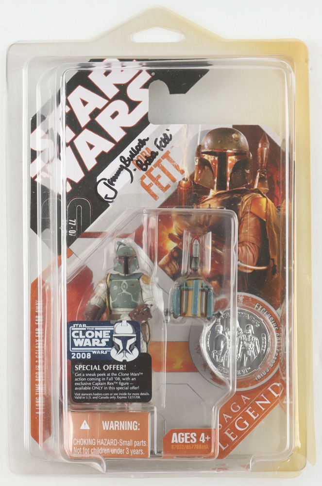 Figure measures approximately 3" tall. Hand-signed and inscribed on the cardboard packaging by Jeremy Bulloch (D. 2020).
